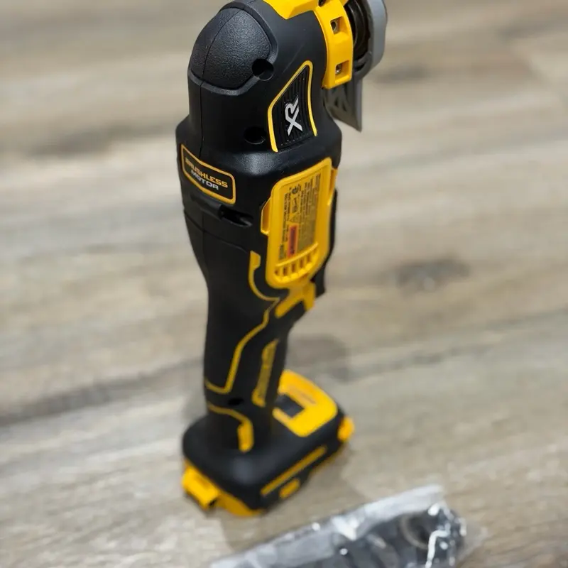 This 20-Volt MAX Brushless cordless 3-speed oscillating multi-tool includes a universal accessory adapter and 2 wood cutting blades to help get your project started. The DCS356 oscillating multi-tool has a powerful brushless motor providing up to 57% more run time over a similar brushed tool. The 3-speed selector allows users to choose their speed setting based on application. The Quick-Change accessory system allows you to change blades quickly and easily, and with the universal accessory adapter, it's compatible with most oscillating tool accessories. The DUAL-GRIP variable speed trigger provides ultimate speed and application control. The DEWALT oscillating tool guide system allows you to customize the depth or height for accurate repeatability, and the bright LED light illuminates dark work spaces. Battery and charger sold separately.