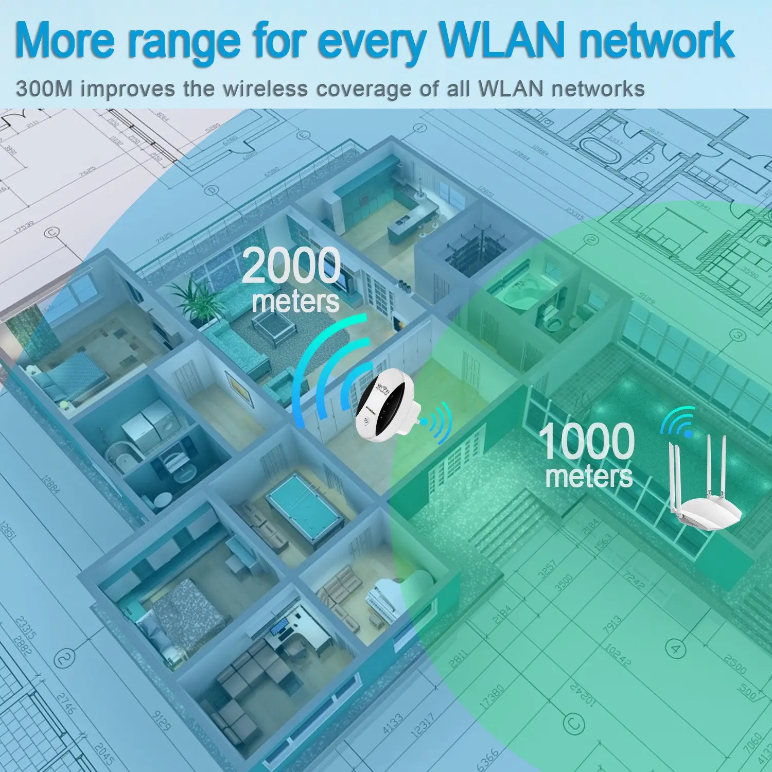 【Long Range】: Acts as a long-range amplifier, extending Wi-Fi coverage to hard-to-reach areas.