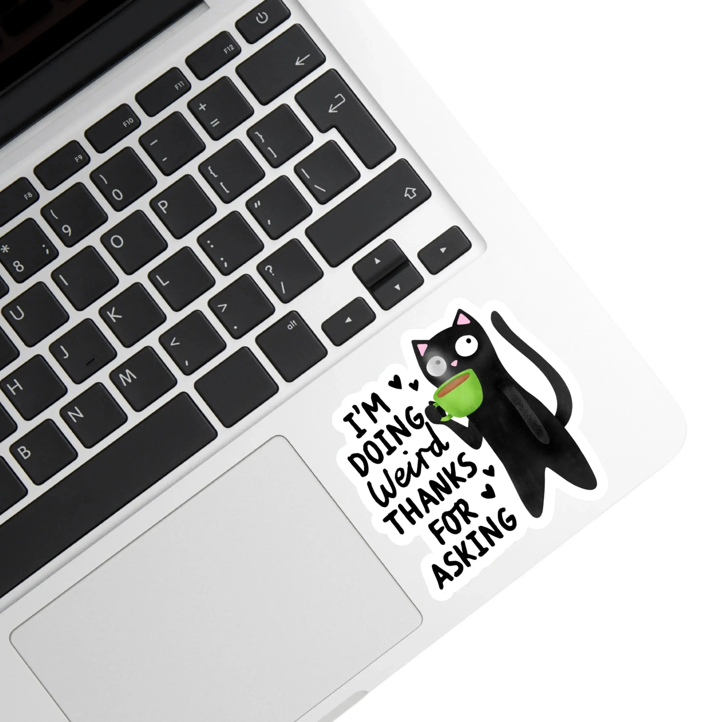 I’m Doing Weird Thanks for Asking Sticker, Funny Black Cat Coffee - Water Bottle, Laptop
