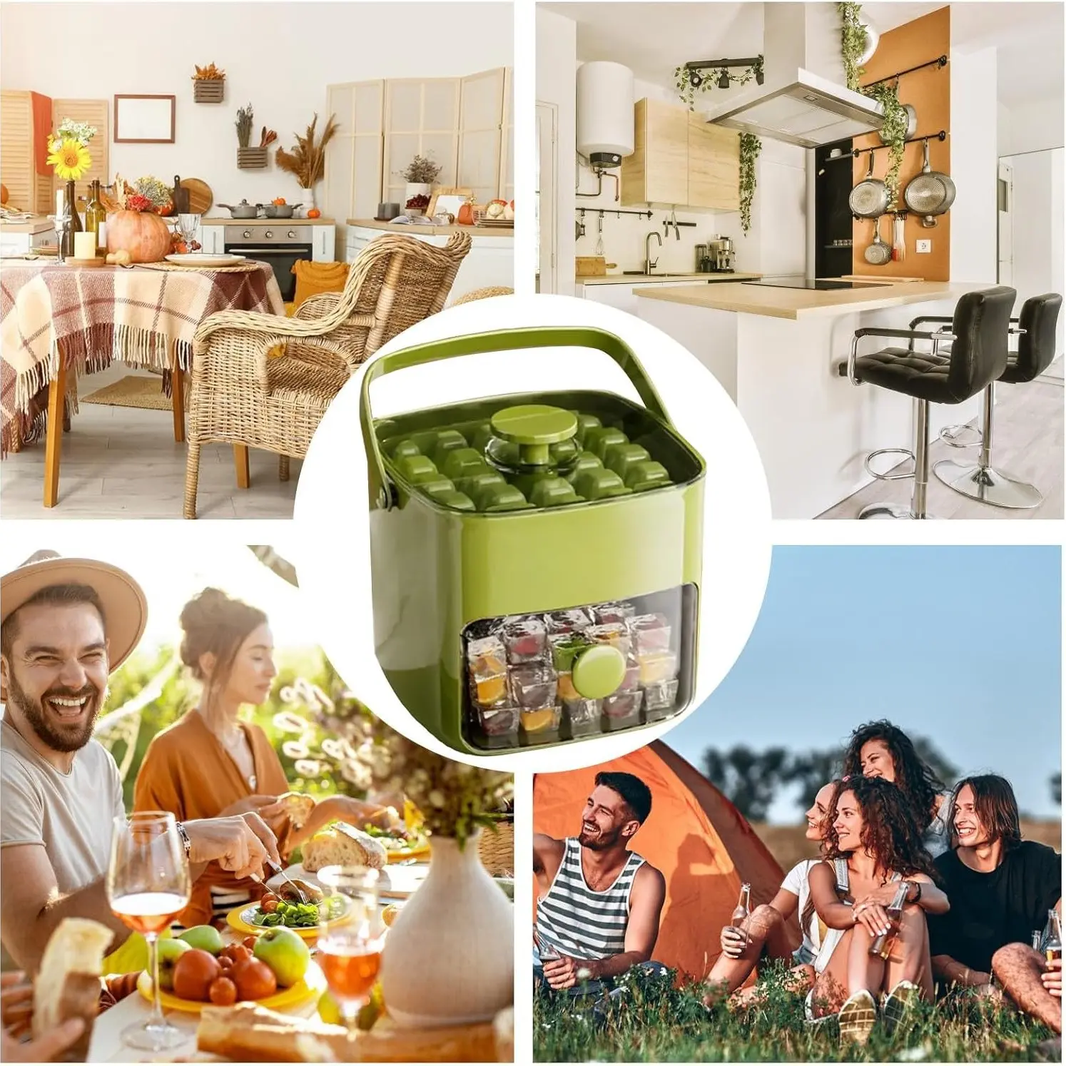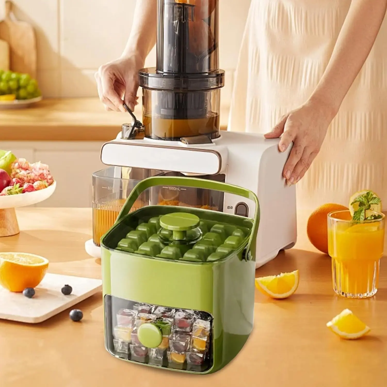 Compact Ice Tray with Lid and Trash Bin, Mini Press Ice Maker, Space-Saving Small Ice Bucket with Clip, Ideal for RV, Office, Mini Fridge, Water Bottle