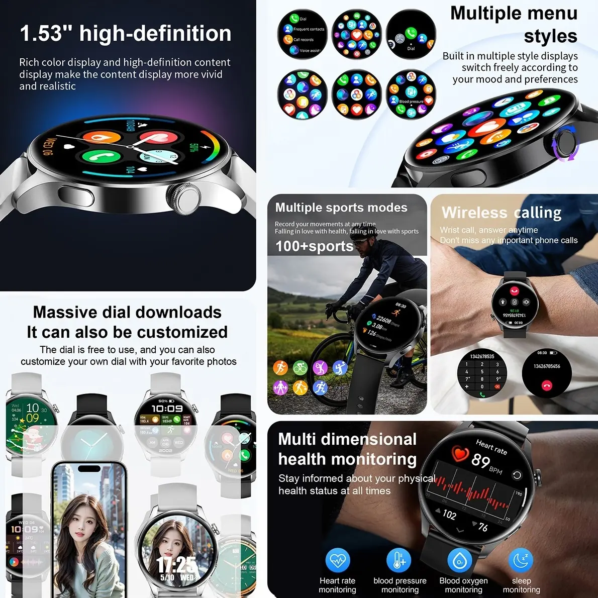 High-value smart watch, 1.53-inch touchscreen with wireless calling, over 100 sports modes and watch faces, AI voice assistant, compatible with Android and iPhone watches, fitness watch wearable device, ceramic resin strap waterproof watch.