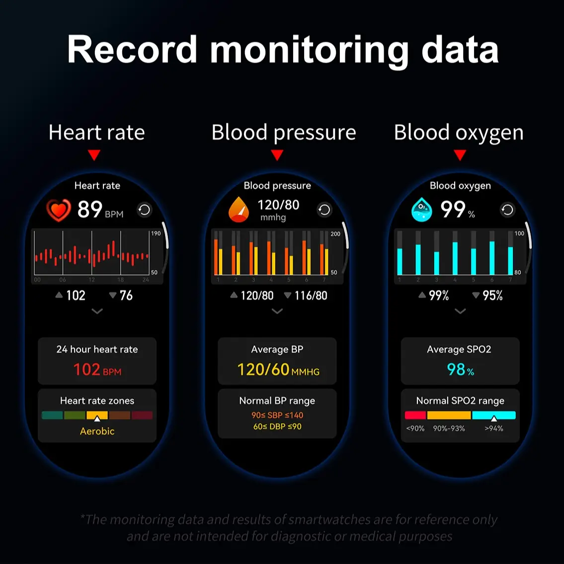 Universal smart sports watch, 1.83 inches HD touch screen, wireless calling, compatible with Android/iPhone, over 100 sports modes, pedometer, blood pressure and heart rate sports tracker, stainless steel and silicone dual strap, waterproof.