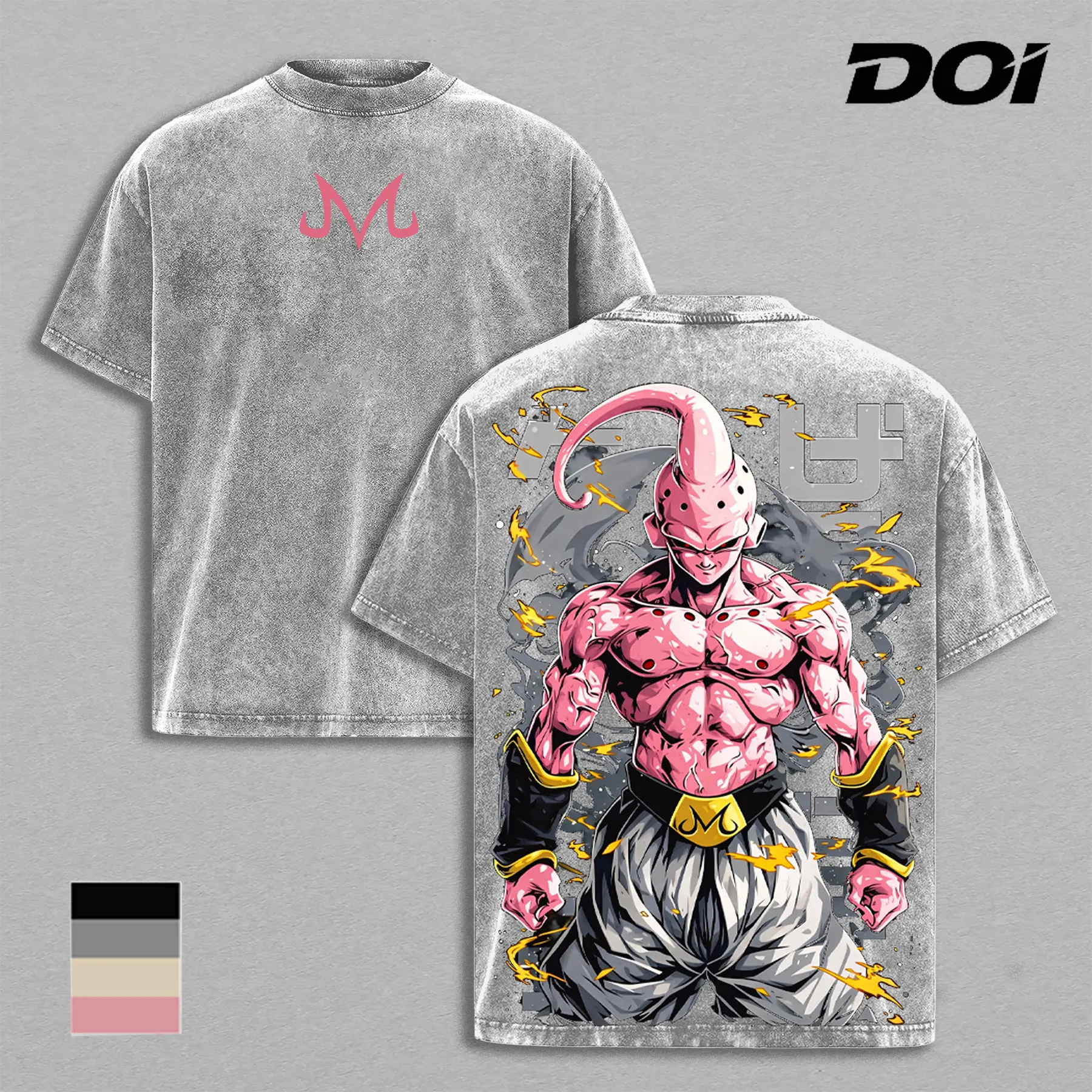 5. Majin Buu Vintage Washed Anime T-Shirt | Evil Buu Power Aura Graphic Tee | Oversized Gym Pump Cover Streetwear | Heavyweight Cotton Retro Shirt | Gift for DBZ Anime Fans