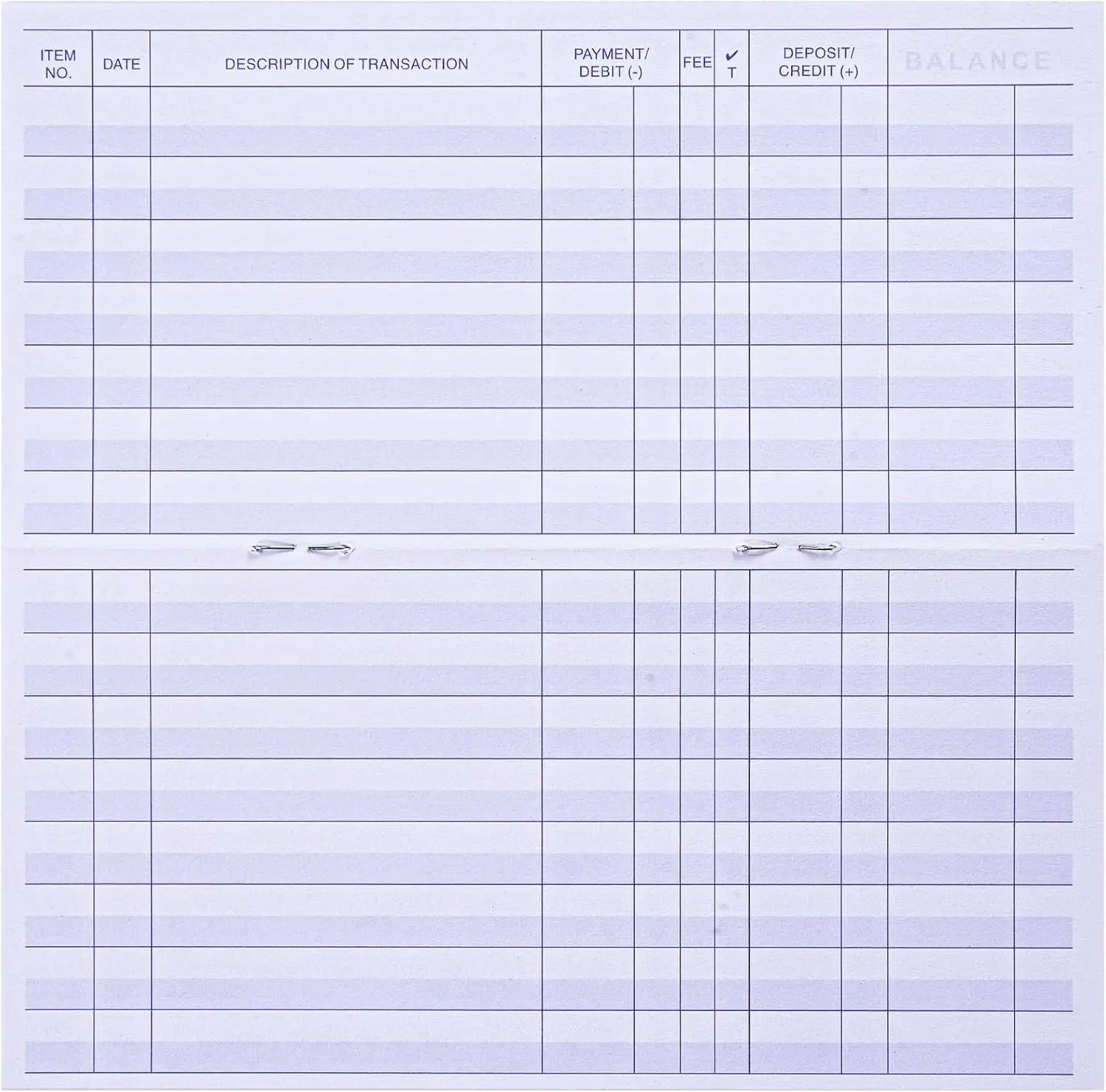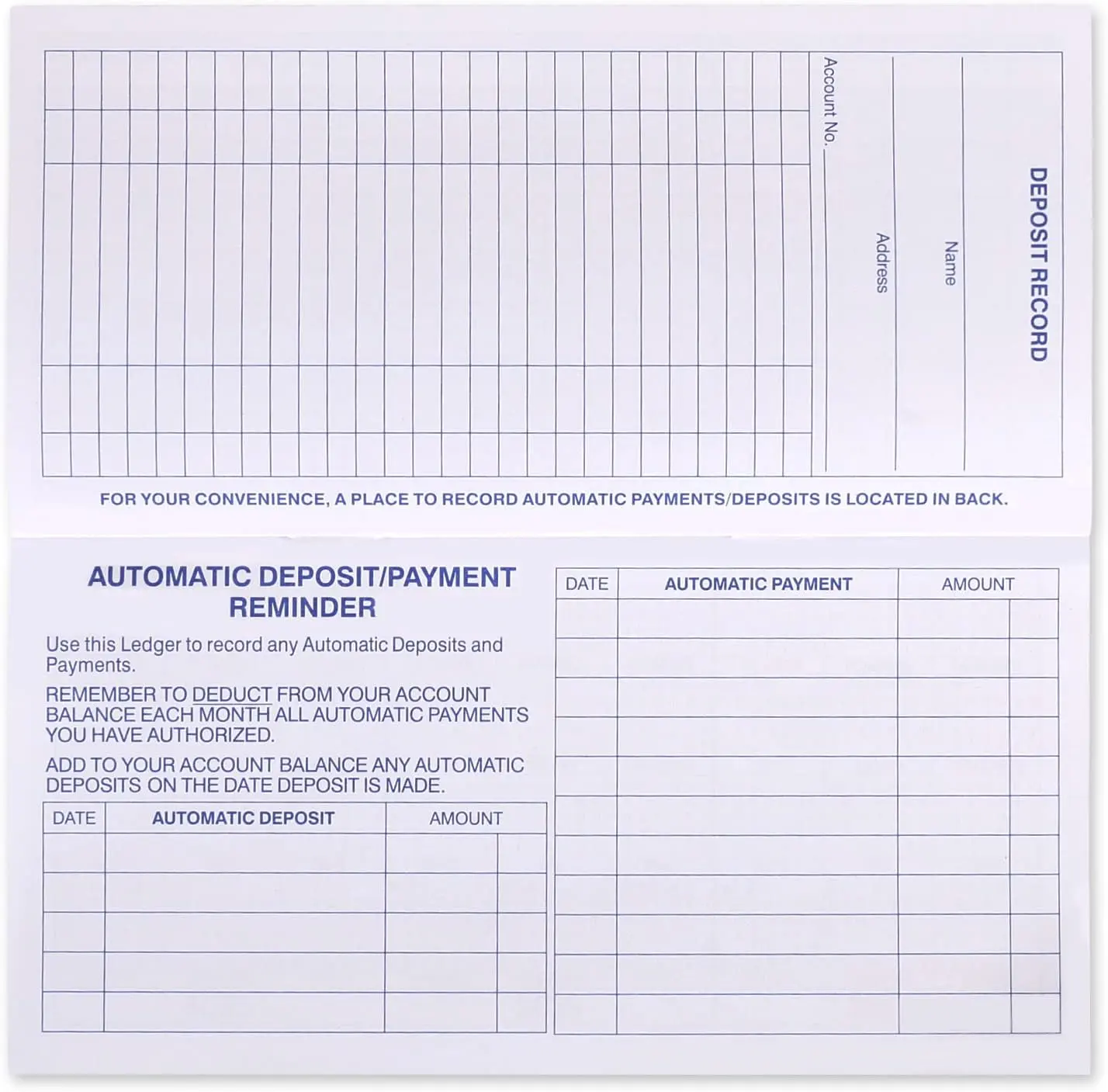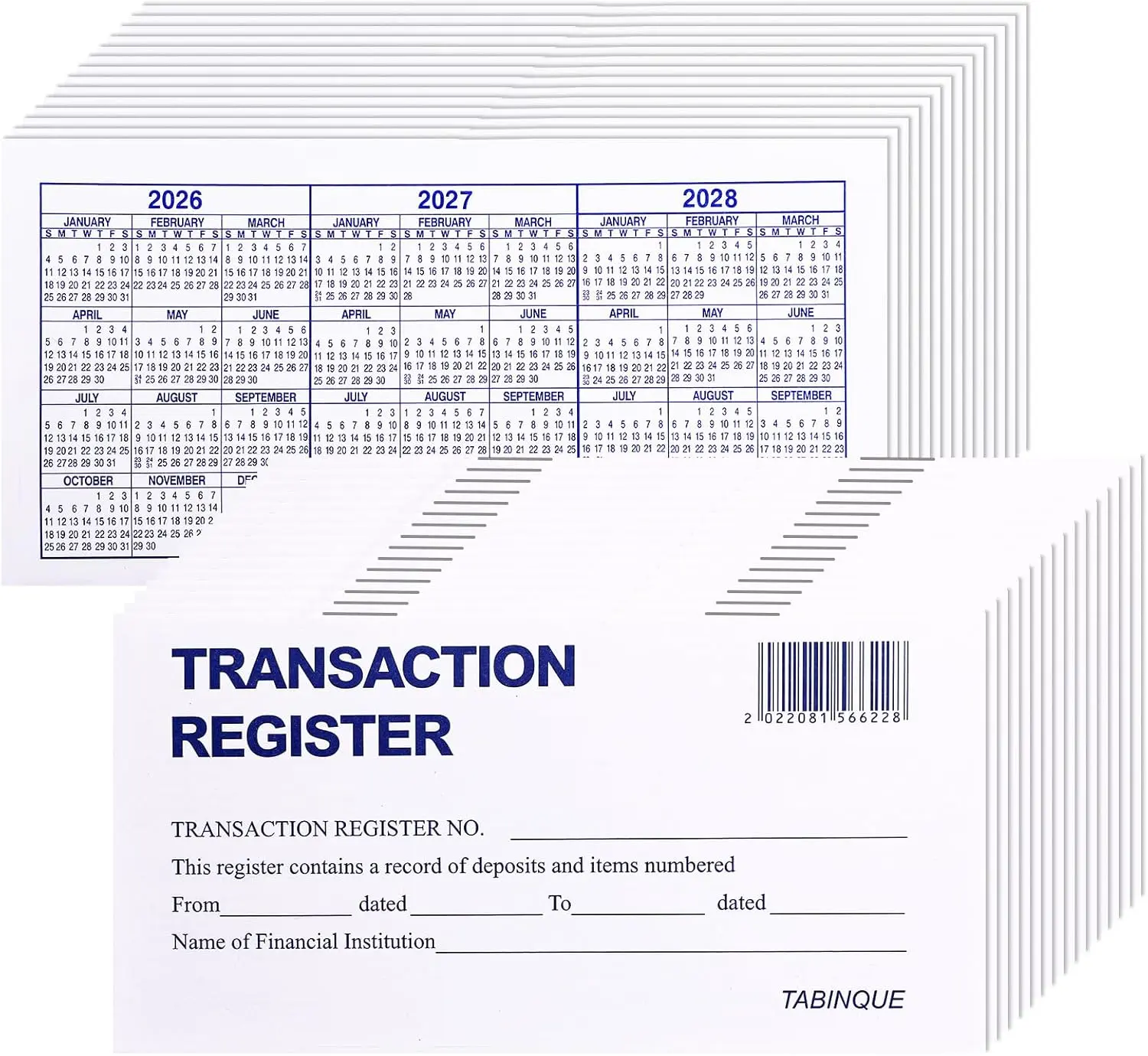 ·Standard checkbook register measuring 3" x 6".