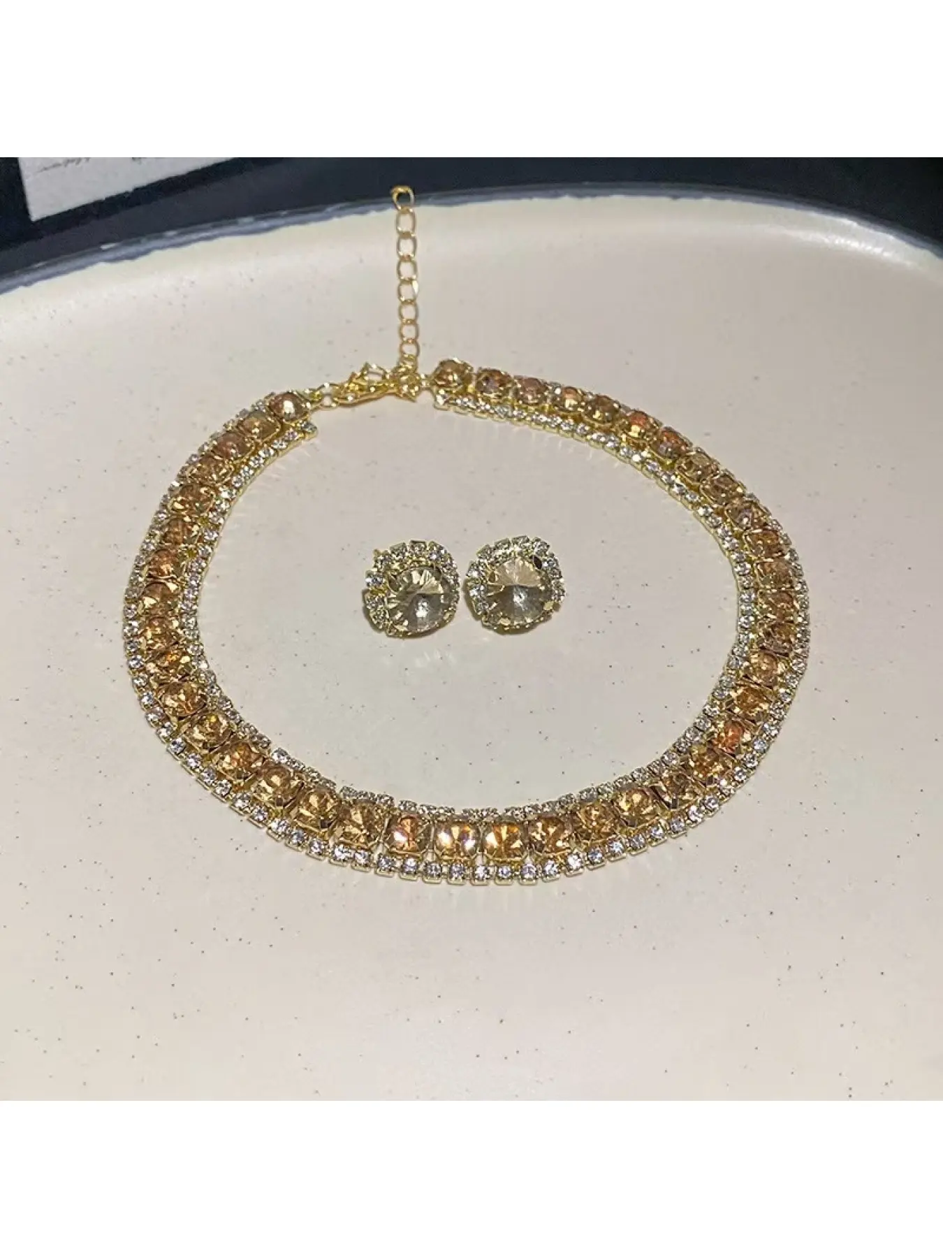 European and American Style Geometric Cubic Zircon Drop Necklace Women's Personalized Versatile Clavicle Chain Fashion Jewelry