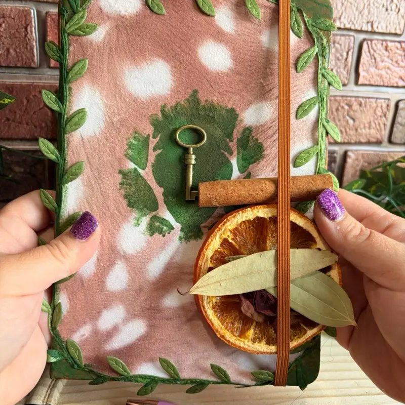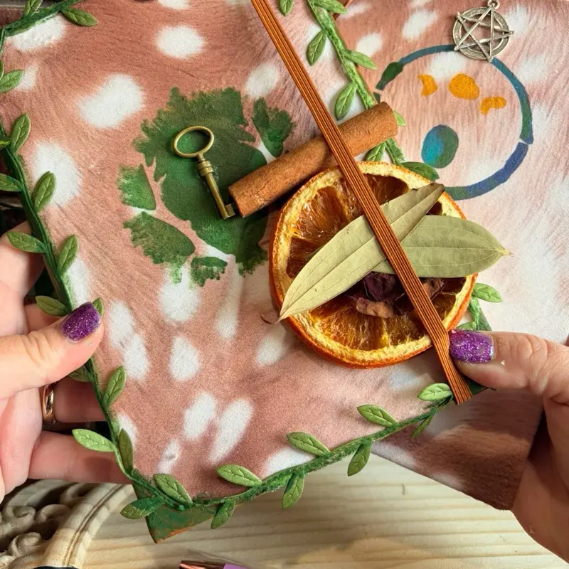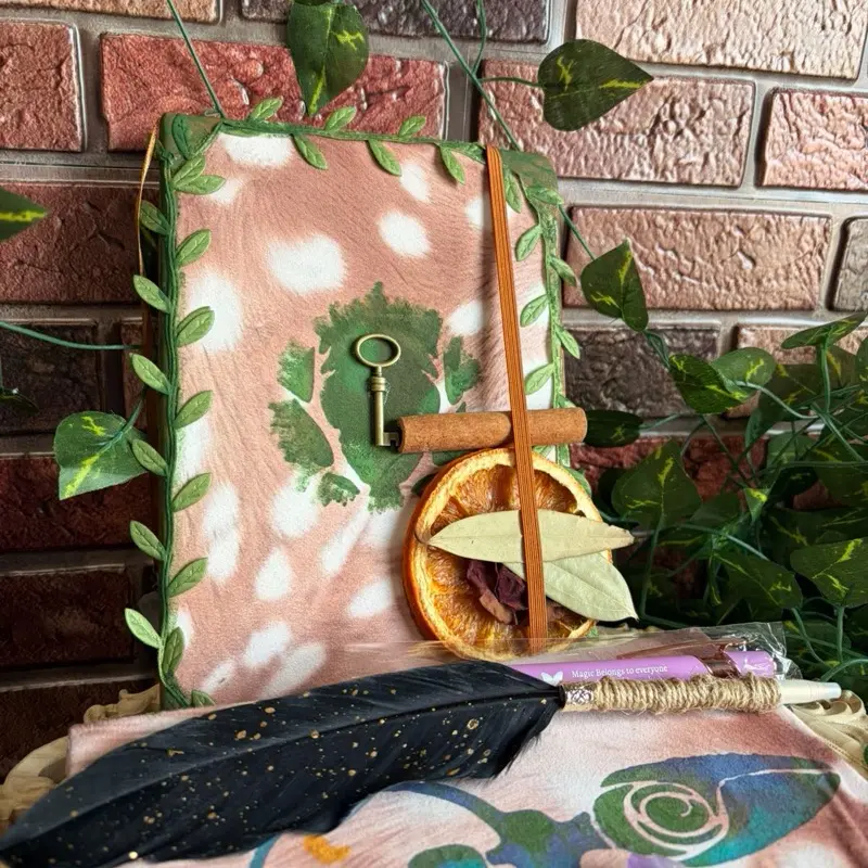 Faux Fawn print fabric journal, hand crafted grimoir, book of shadows