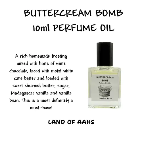 BUTTERCREAM BOMB 10ml Perfume Oil - Roll On Rollerball Fragrance Frosting White Cake, Vanilla Bean, Madgascar Vanilla Bakery Dessert Foodie Gourmand Scent