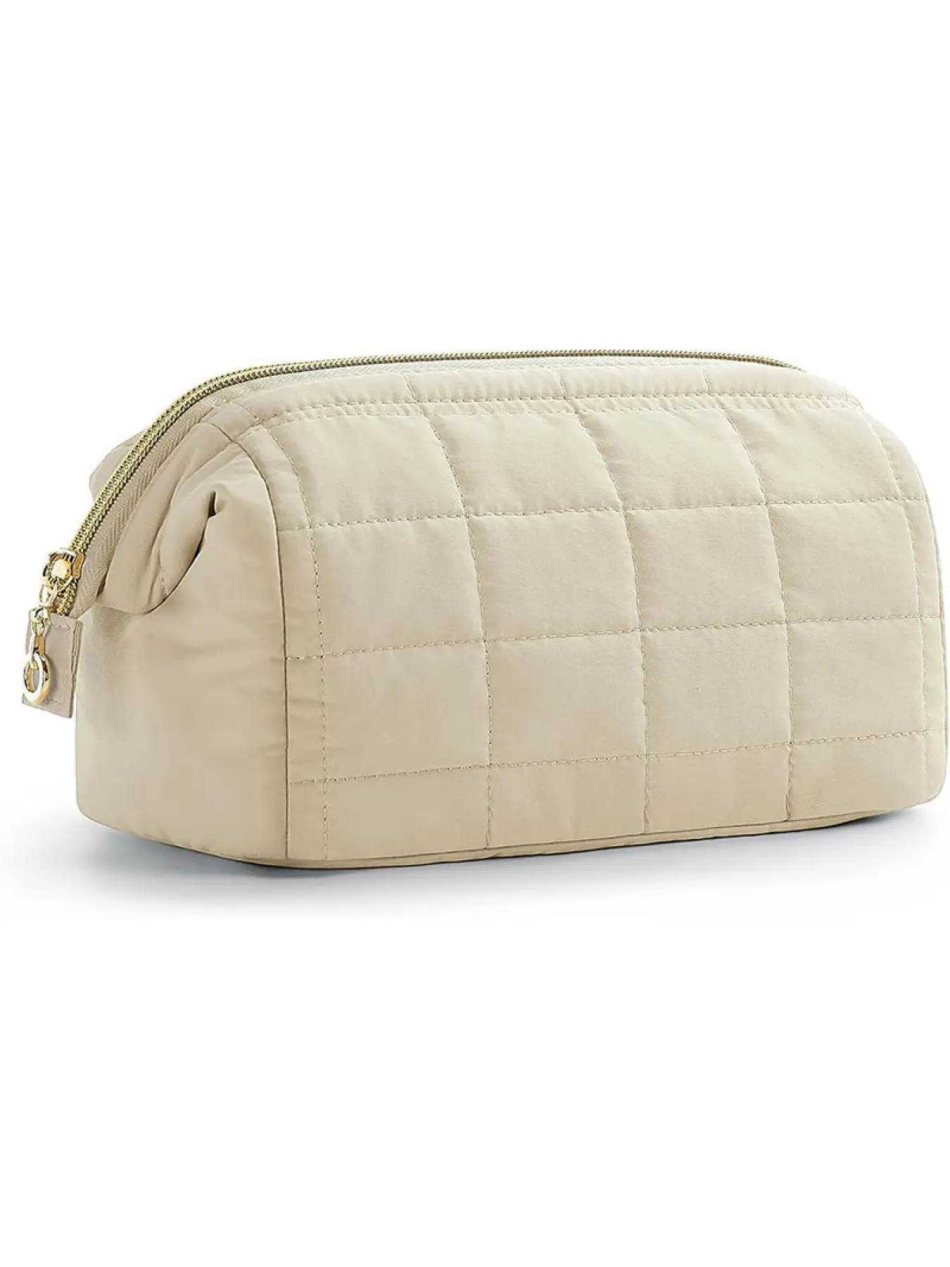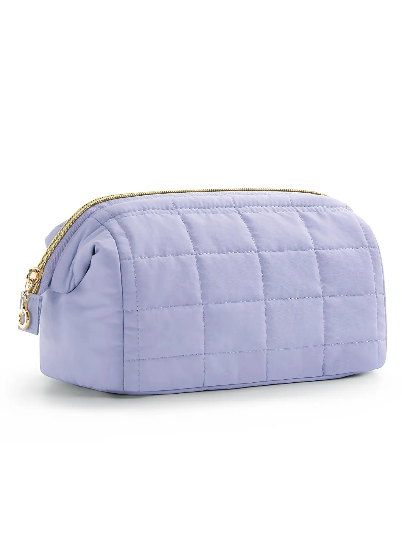 Makeup Bag Travel Toiletry Bag, Puffy Padded Make Up Bags for Women Makeup Organizer Case, Wide-open Pouch Purse Travel Essentials Toiletries Accessories Brushes