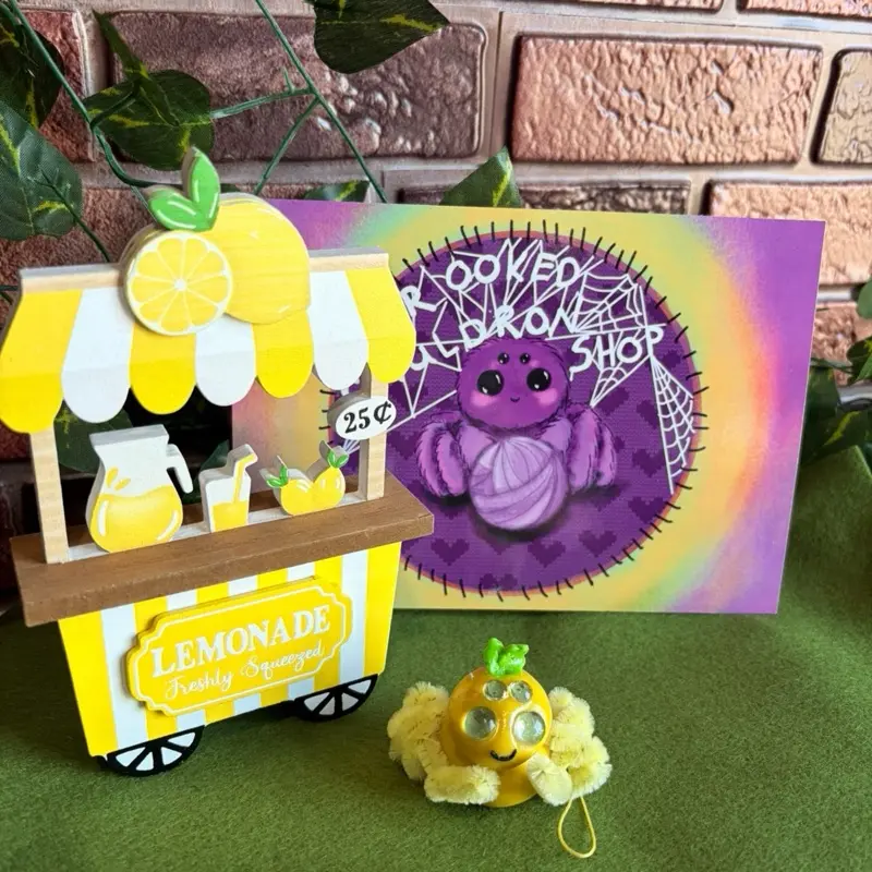 I hand make these adorable little polymer clay spiders for emotional support. They are CUTE and I have 3 lol. Lemon drop is bright sunny yellow with posable legs and a cute little butt web for carrying!
