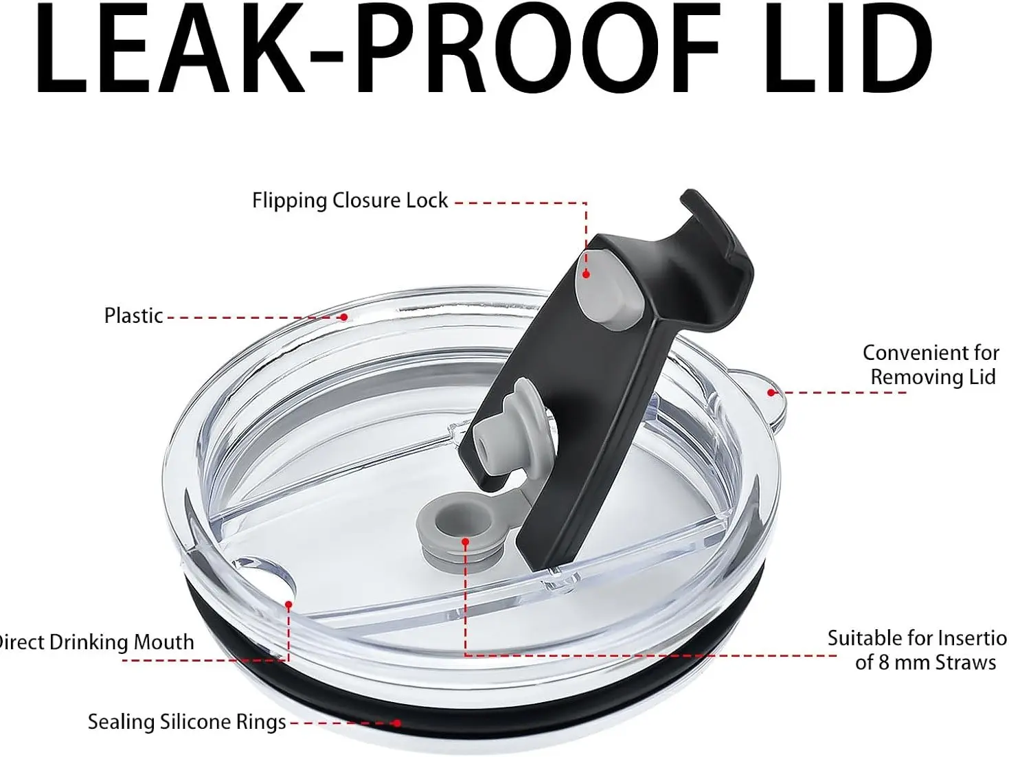 PREMIUM MATERIAL:20 OZ Replacement Lid is Made of crystal clear plastic, lid can be in touch with the drinks directly.Easy to clean, dishwasher safe.These premium spill proof lids also designed to be a straw stainless steel straight straw and bent straws