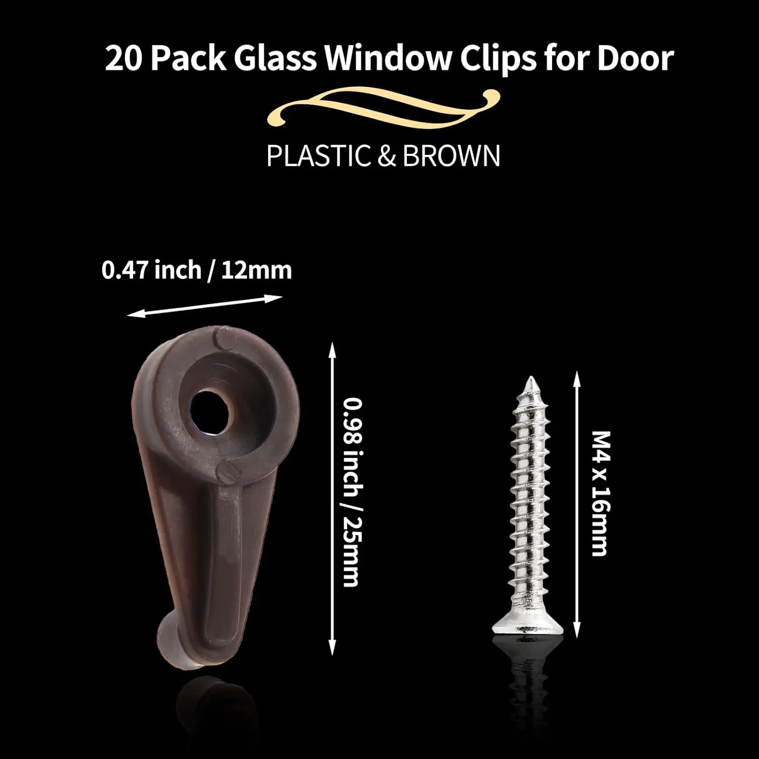 20 Pack Glass Window Clips Brown Retainer Clips, Glass Door Holder Cabinet Panel Bracket Screen Fixing Clips, Glass Door Retainer Kit Mirror Hanging Hardware for Vanity Mirror Window Screen