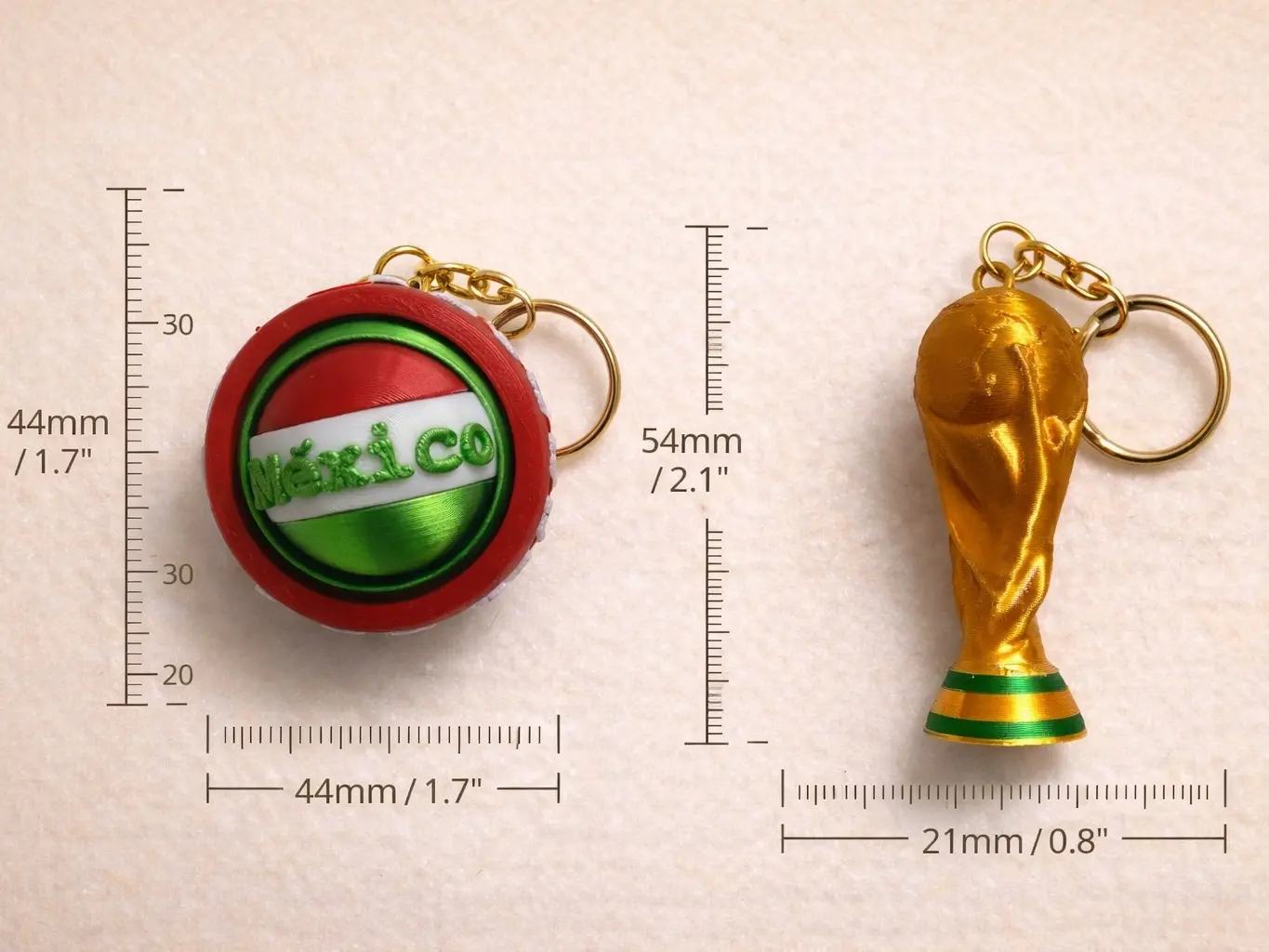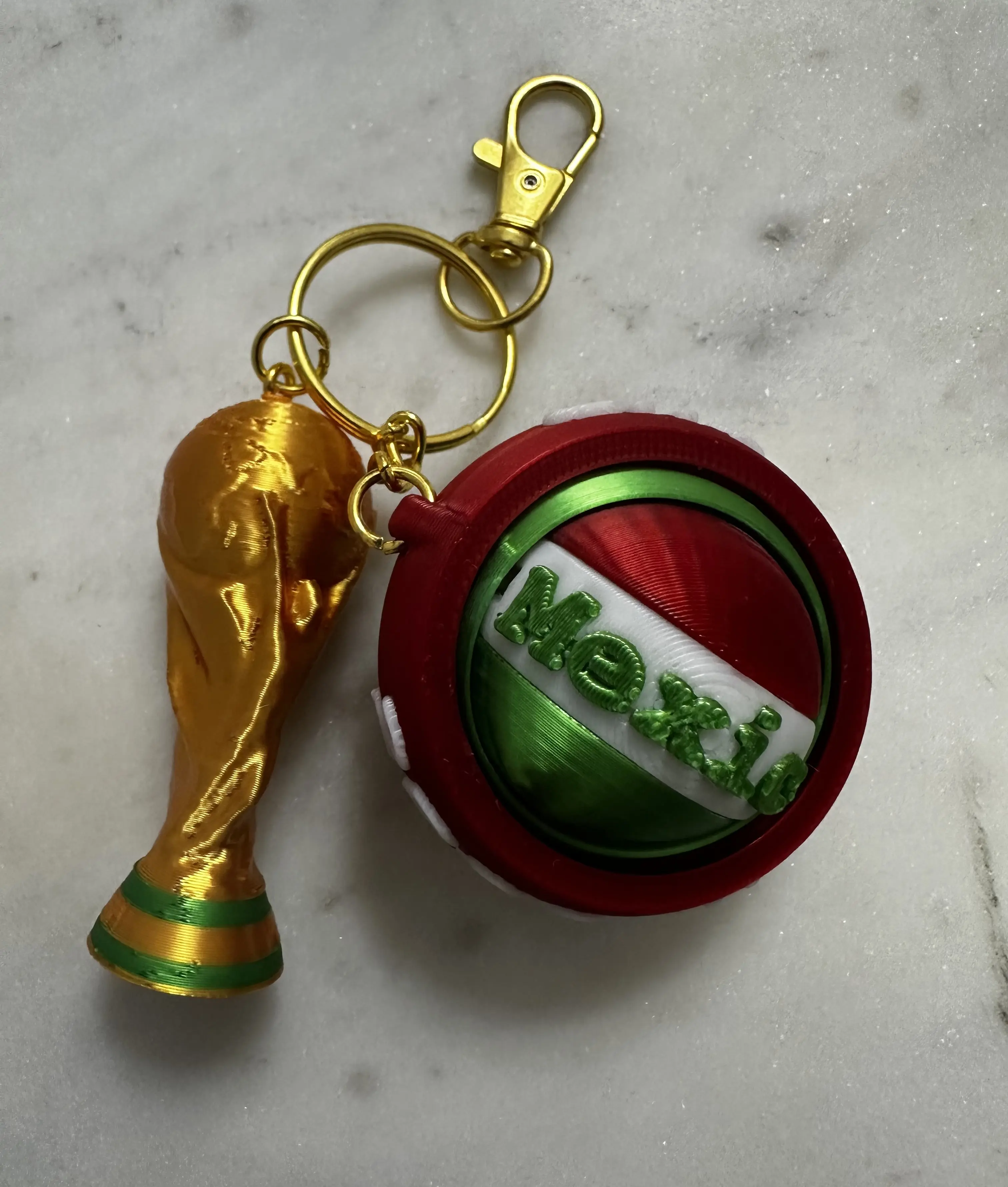 Show your support for Mexico with this unique 2026 World Cup fidget spinner keychain with trophy design. Featuring a smooth spinning soccer ball alongside a detailed World Cup trophy, this piece combines fun, style, and national pride in one standout accessory.