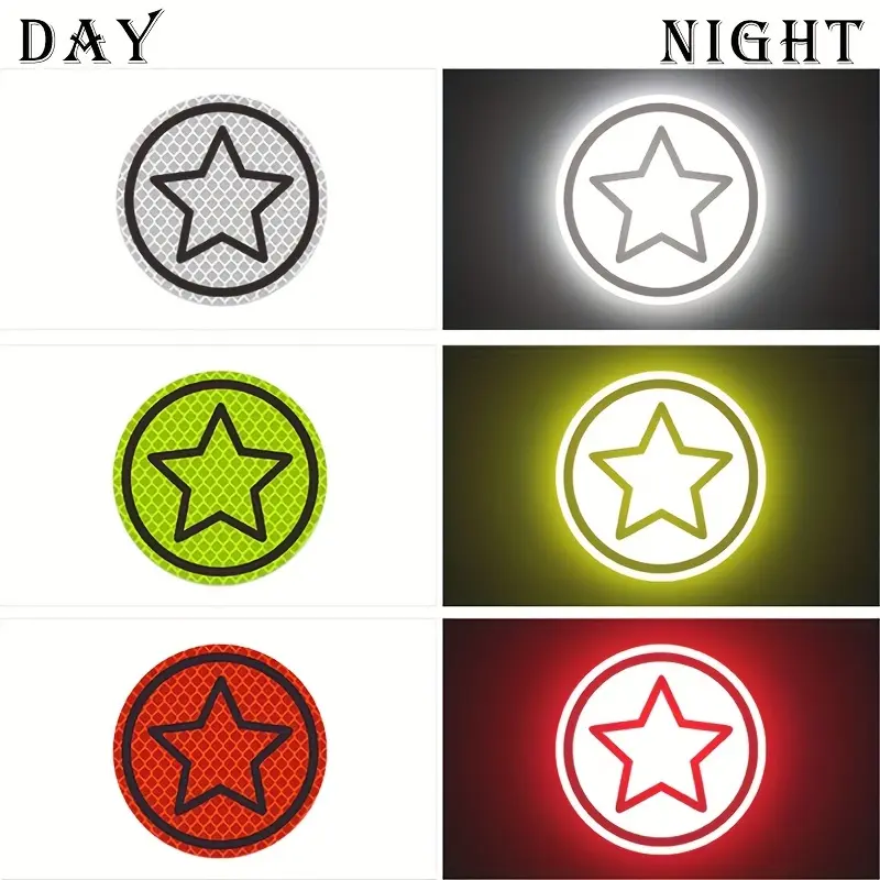 2-Pack Reflective Stickers for Motorcycle Helmets and Cars, Round and Star Pattern Reflective Warning Stickers for Safety