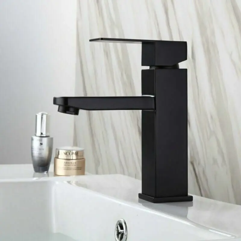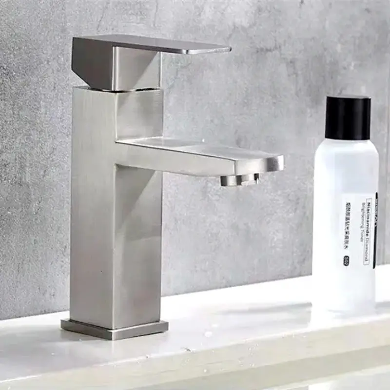 Stainless Steel Sink Faucet, Single Hole Cold Hot Water Mixer, Modern Style, Bathroom Basin Replacement Accessories