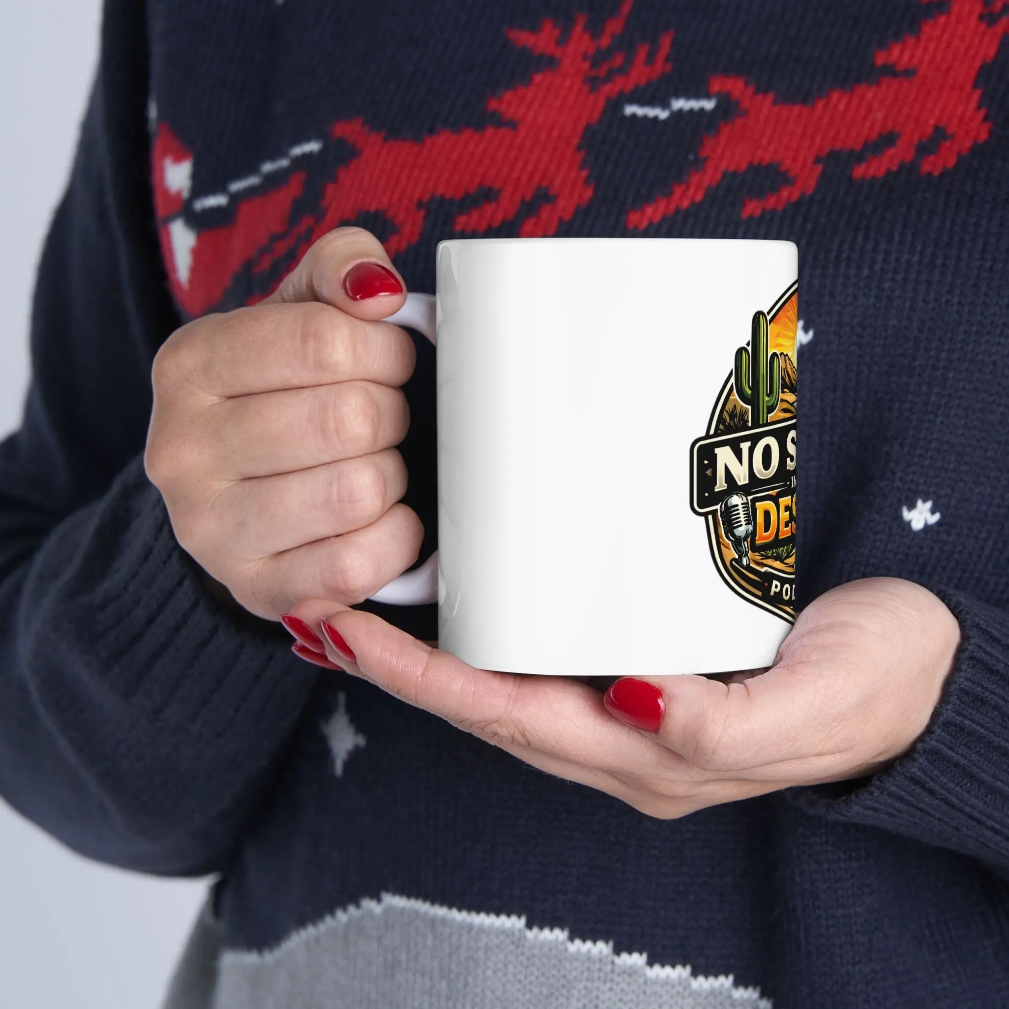 No Shade in the Desert Podcast Mug | Desert Sunset Cactus Logo Mug