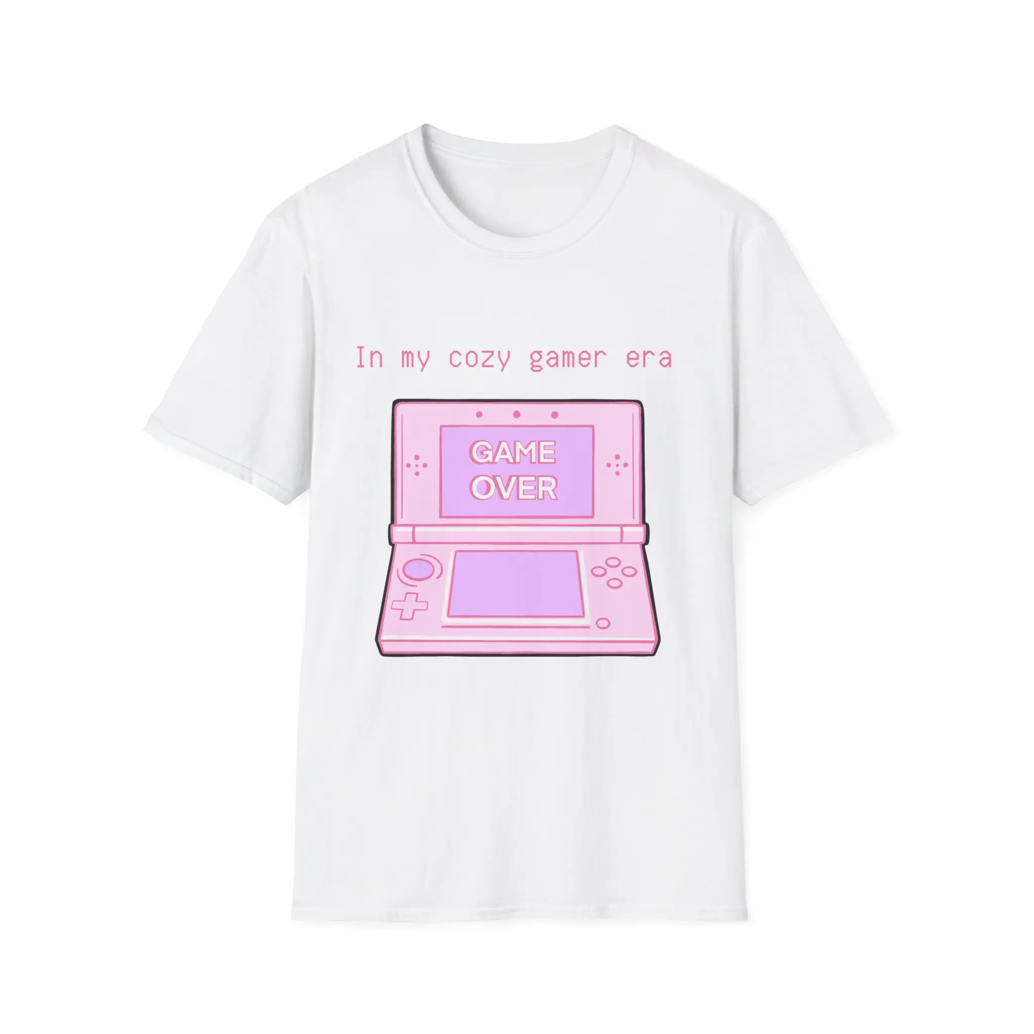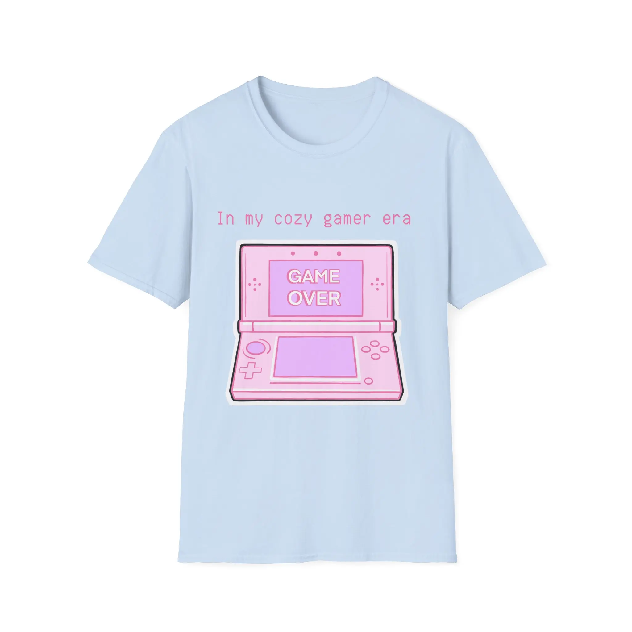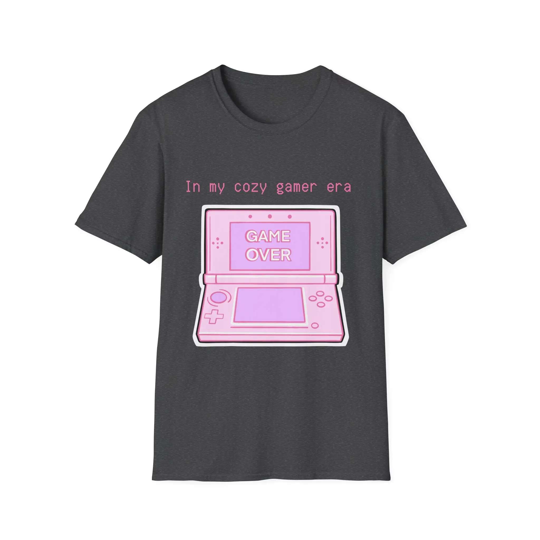 Soft, light, and just a little nostalgic — this tee brings cozy handheld gaming to everyday wear. A pastel-pink handheld console sits center chest with the gentle caption “In my cozy gamer era,” evoking late-night save points, plush blankets, and quiet, joyful runs through pixel worlds. The breathable ring-spun cotton feels soft against skin and the classic crew silhouette layers easily under hoodies or over long sleeves. Wear it for slow weekend sessions, small-stream vibes, or when you want your outfit to quietly say you game for comfort and memory rather than leaderboard fame.