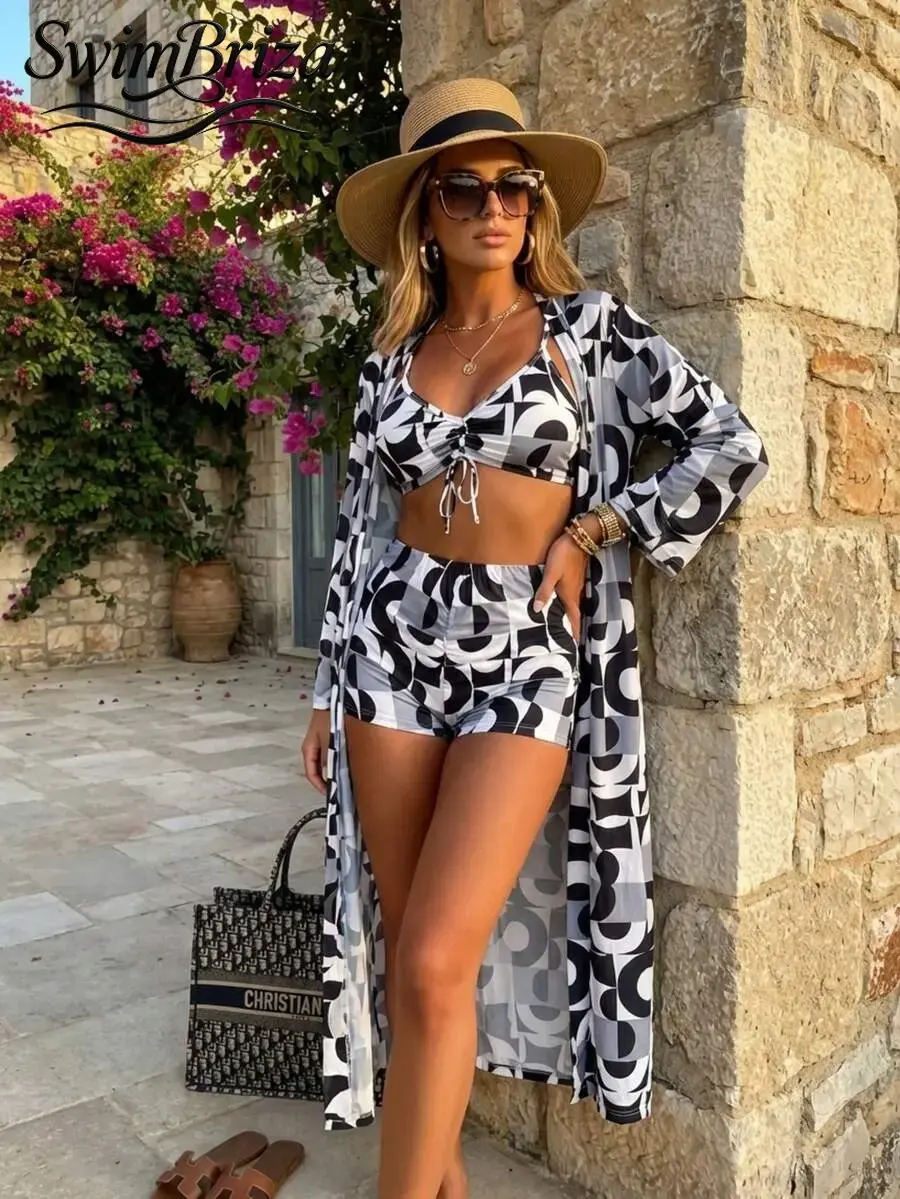 Briza|Three-Piece Bikini Set Swimsuit With Cover-Up Swimwear For Young Women Summer Outdoor Activities Seaside Holiday