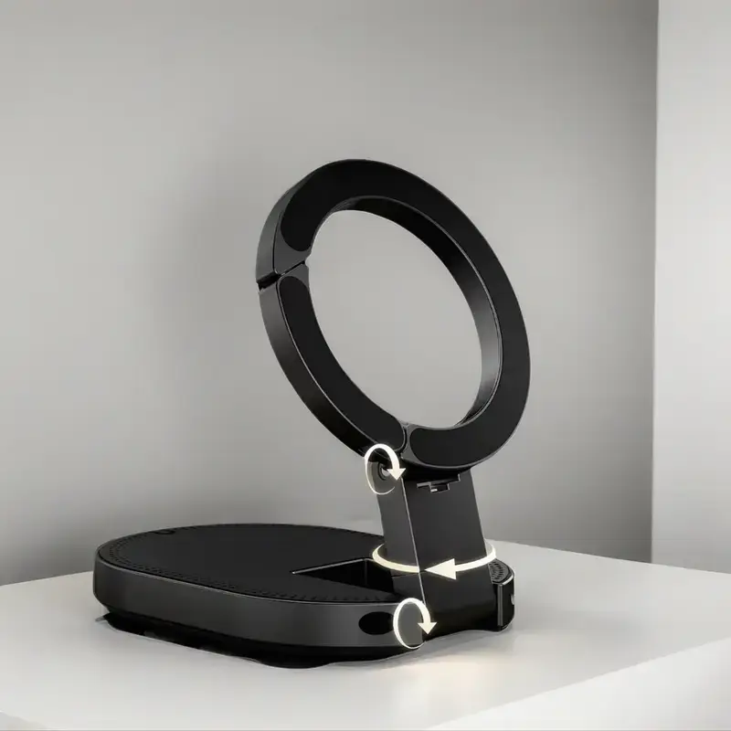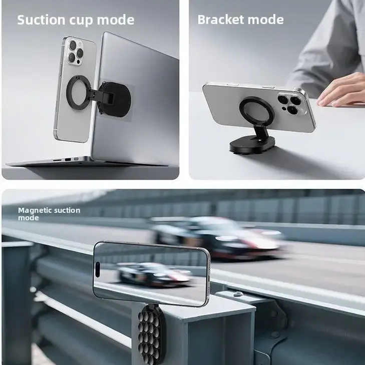 MA39 combines suction, MagSafe, and desktop stand functions. It features 18 suction cups, strong magnets, a hiking clip, and 360° rotation/180° tilt. Perfect for versatile use. It locks tight to car dashboards, mirrors, kitchen tiles, or desks. Keep your phone steady while navigating, cooking, or video calling. No wobbly setups.