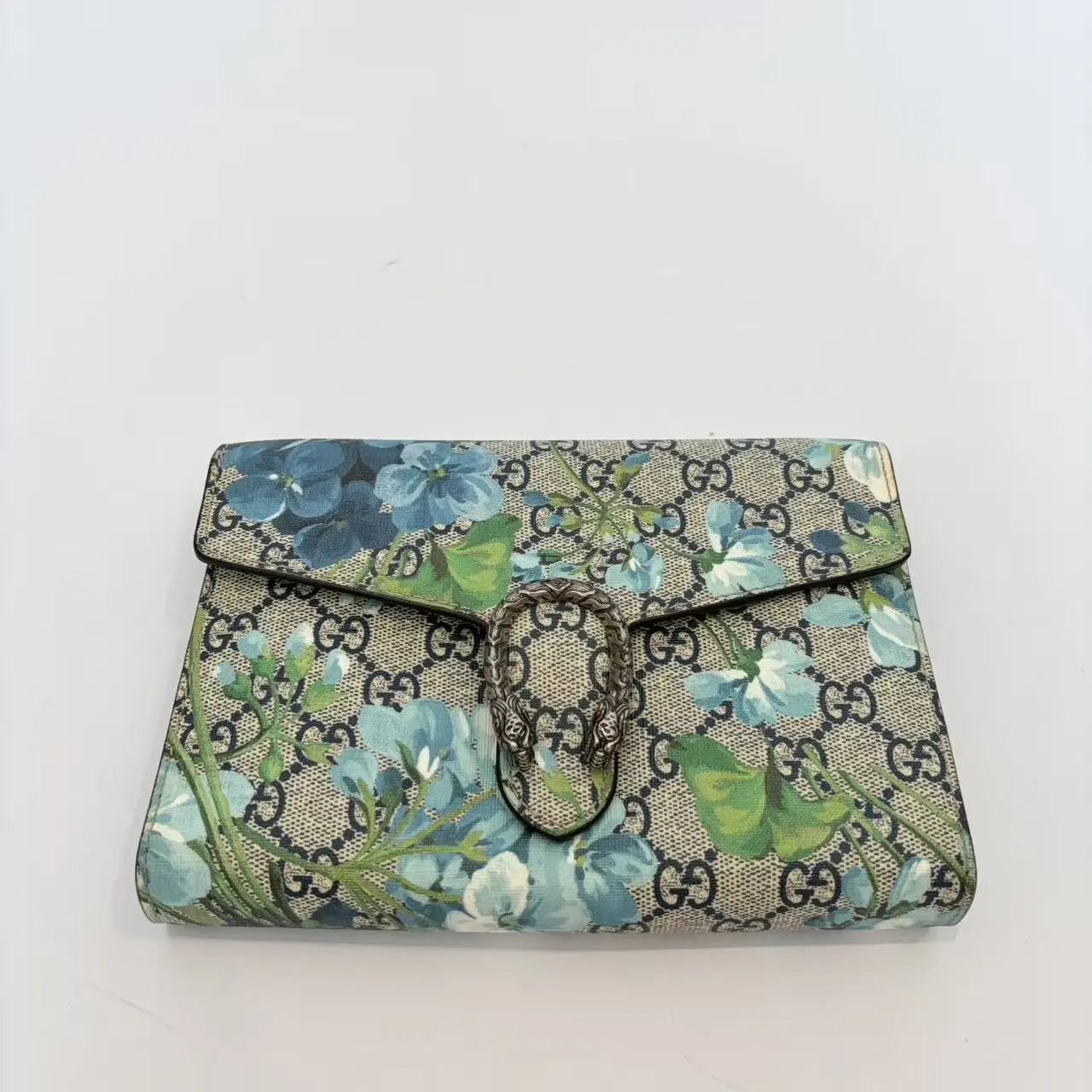 This pre-owned Gucci Dionysus Wallet on Chain is crafted from GG Supreme canvas featuring the signature Blooms floral print, combining classic Gucci heritage with a fresh and feminine design. The piece is accented with the iconic Dionysus tiger head closure, adding a distinctive and recognizable detail.