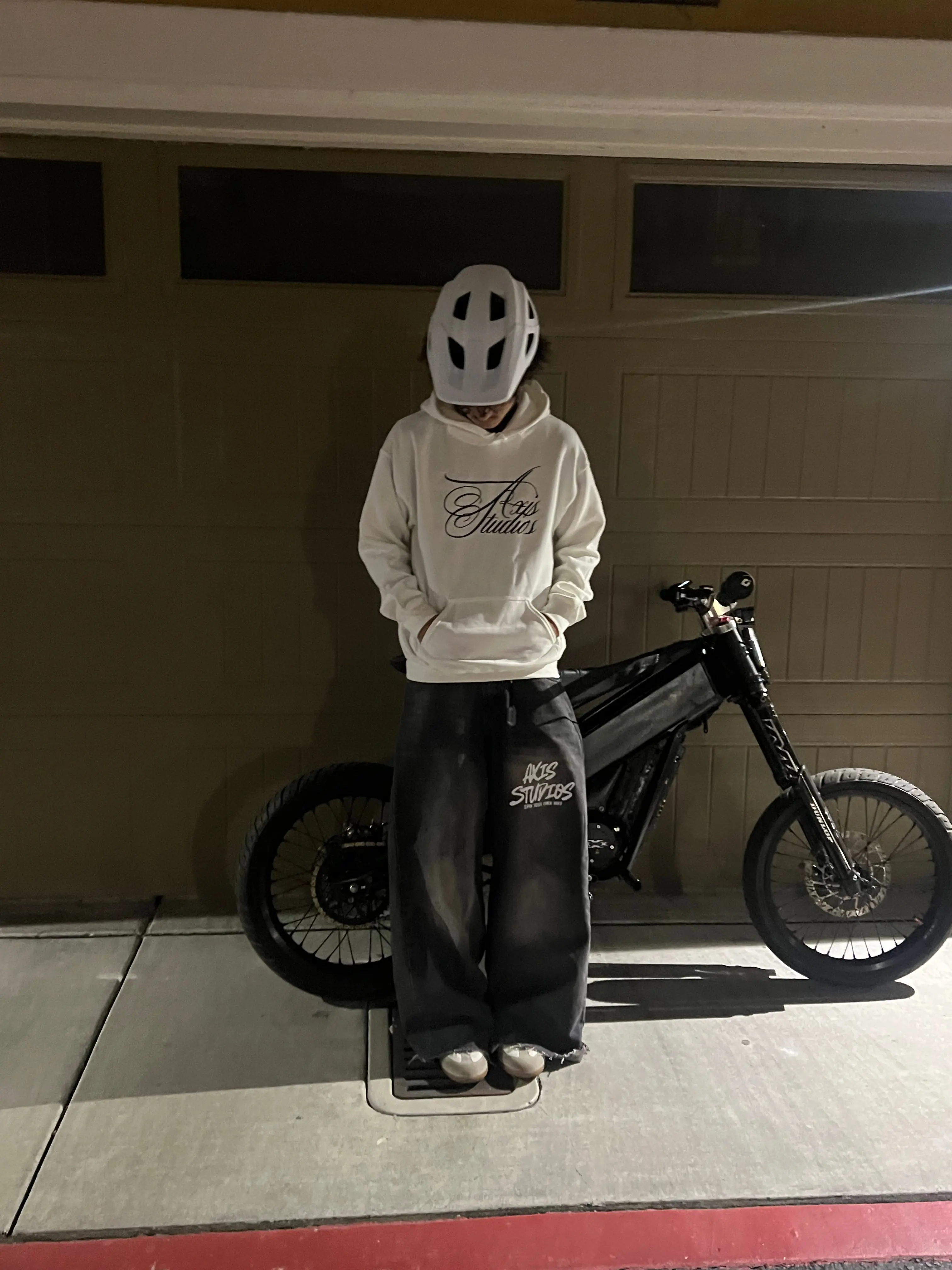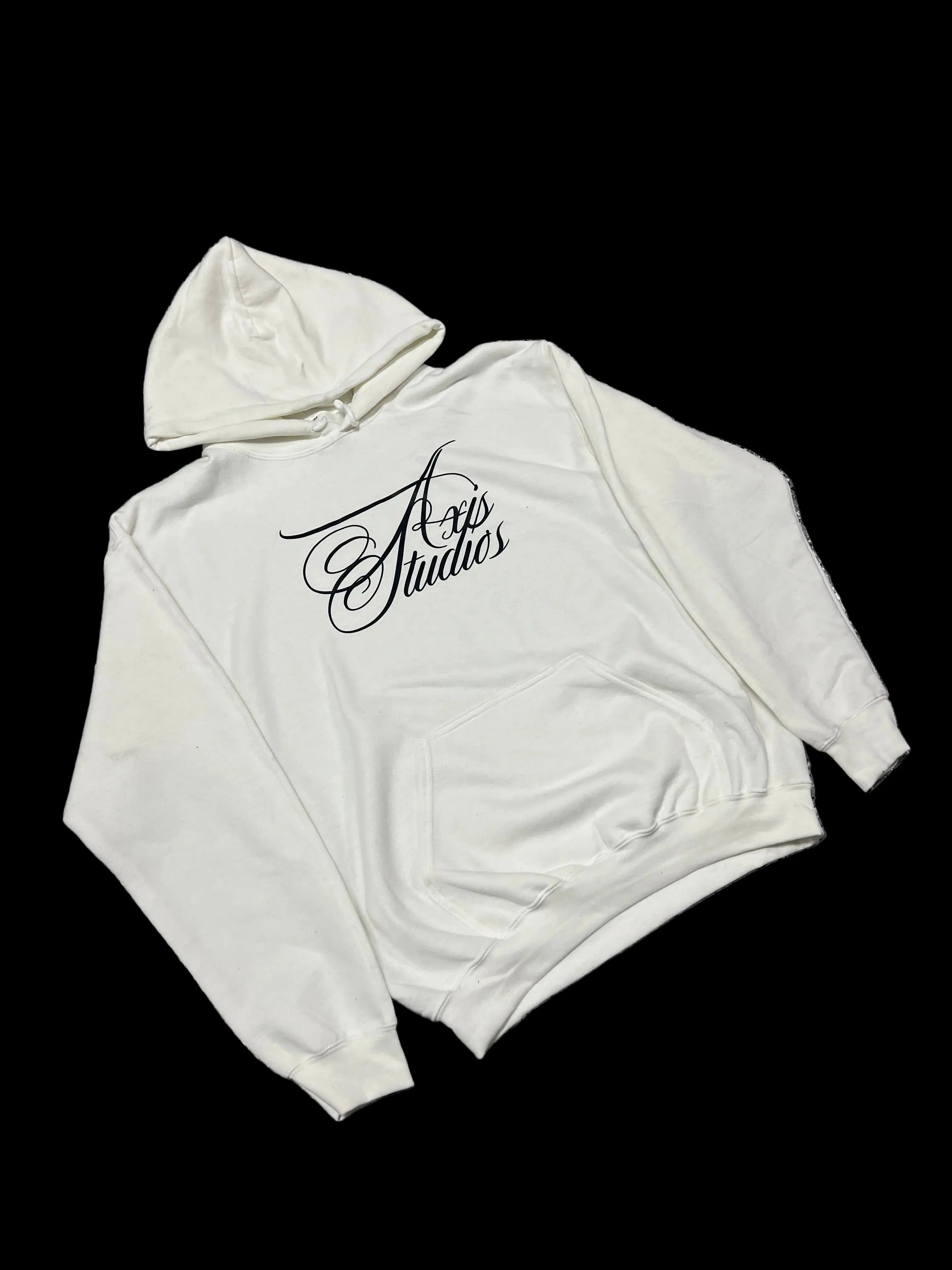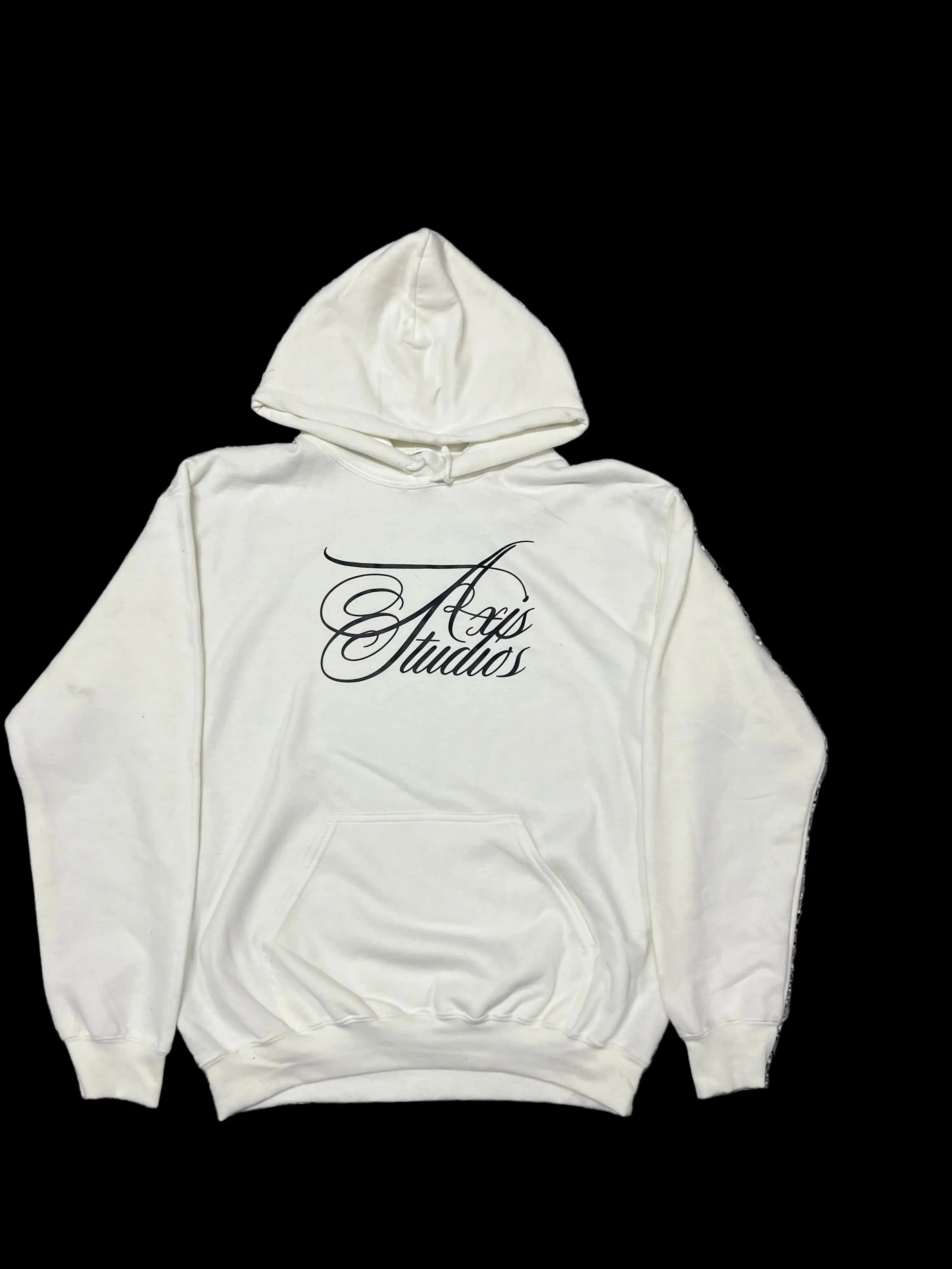 Made from 100% premium cotton, the Axis Studios Distressed White Hoodie brings a clean look with a rebellious touch. The crisp white base contrasts with intentional distressing, giving each hoodie a unique, lived-in feel. Designed with a relaxed silhouette and finished with the signature Axis Studios script, it balances simplicity and statement effortlessly.