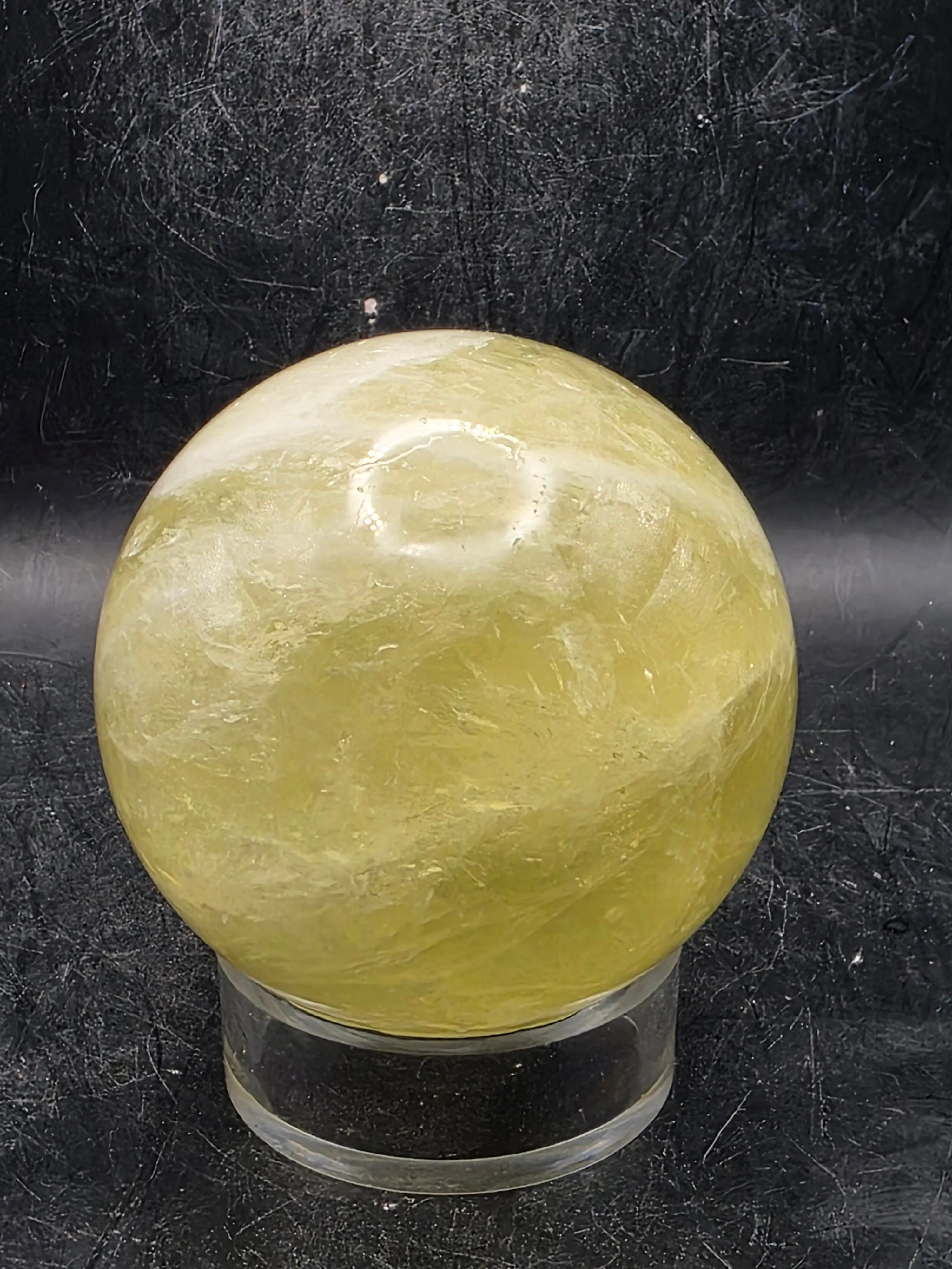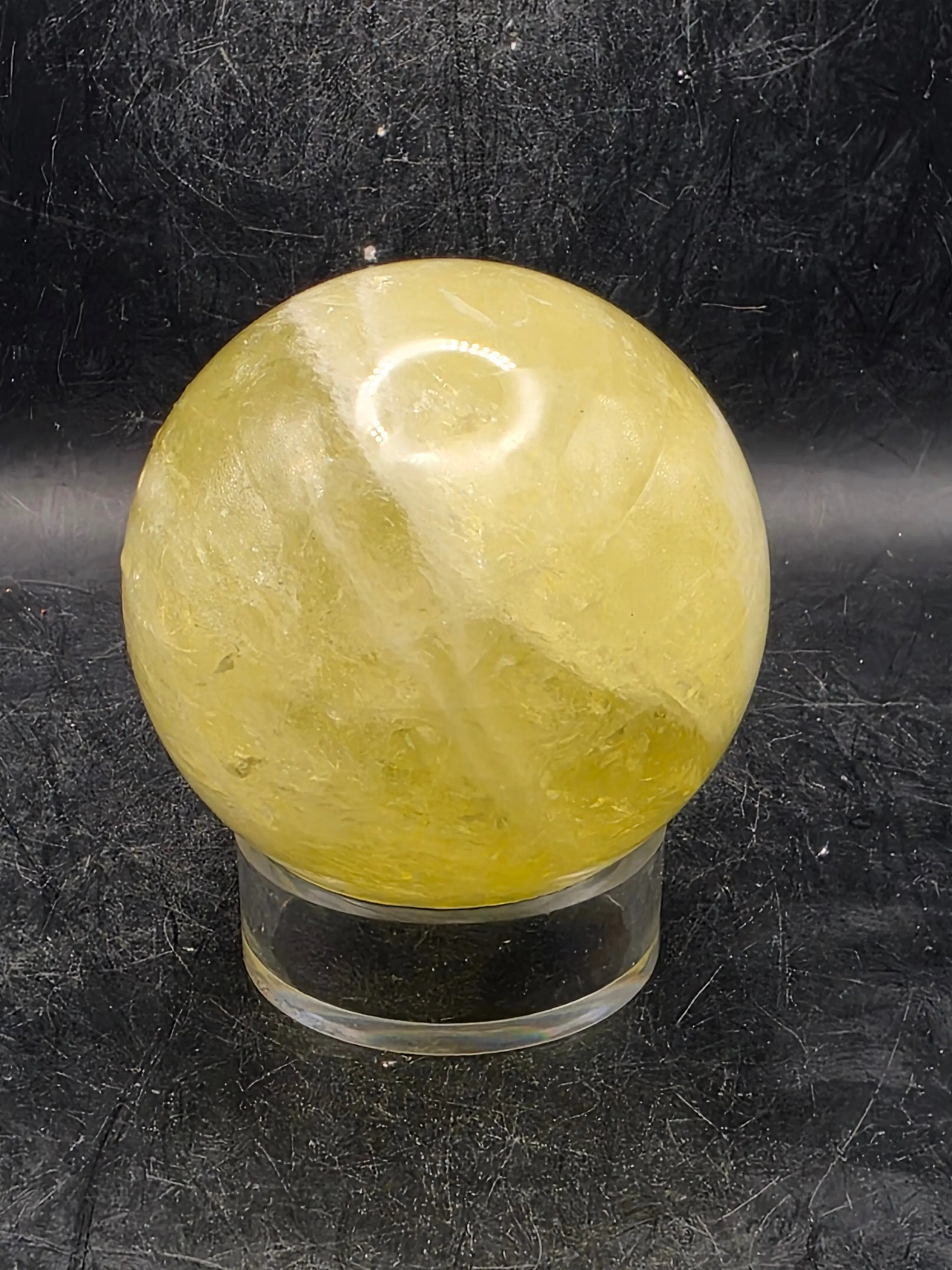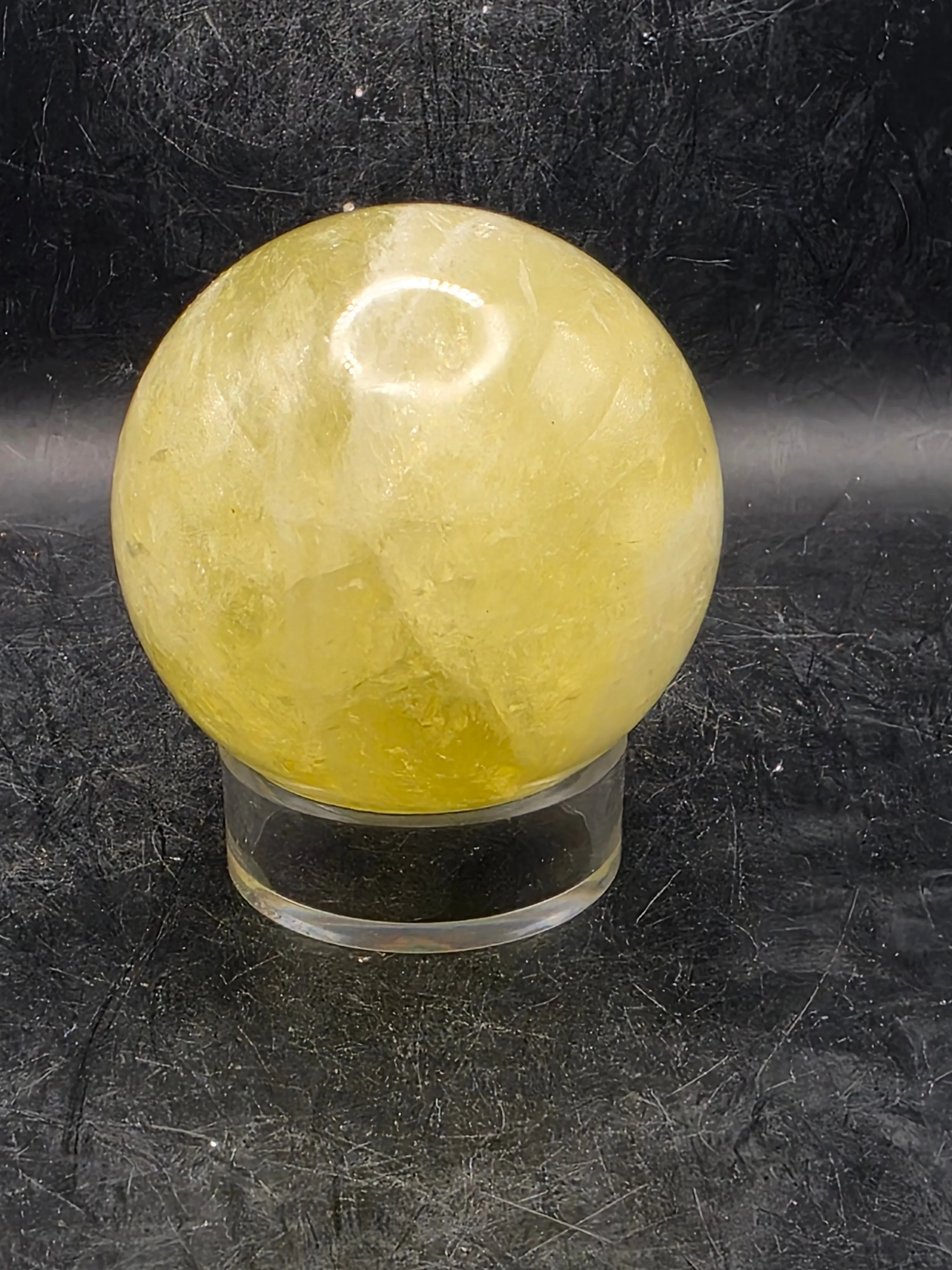Lemon quartz radiates warm, uplifting energy with its distinctive golden-yellow hue. This 64.5mm sphere showcases the crystal's natural clarity and vibrant coloring, making it an exceptional display piece for collectors and practitioners alike. At 13.2 ounces, it carries substantial presence while remaining portable. Lemon quartz is traditionally valued for promoting optimism, mental clarity, and creative inspiration. Whether used for meditation, energy work, or as a striking decorative accent, this premium specimen exemplifies the quality craftsmanship G&J Crystal Emporium is known for.