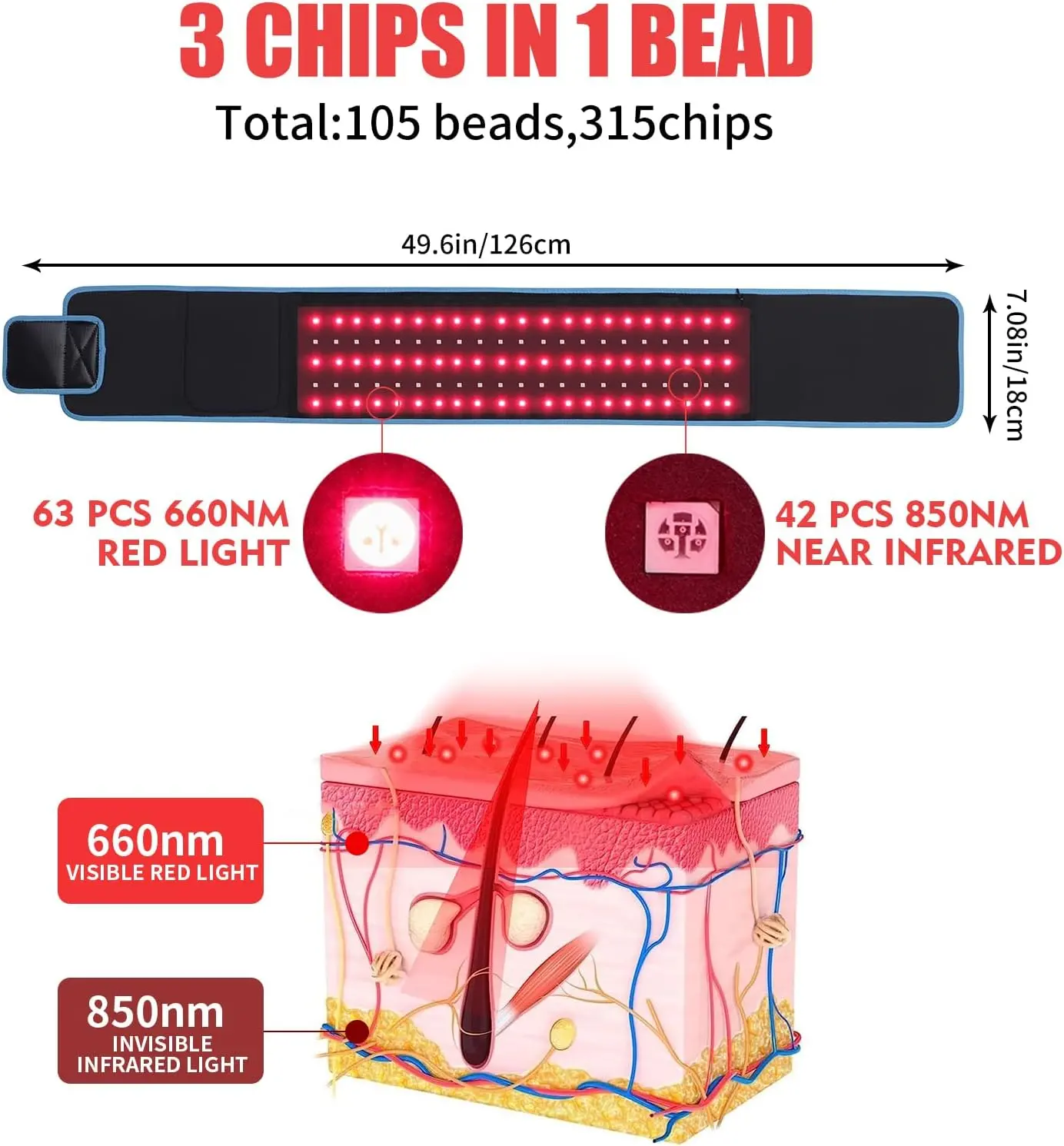 ·660nm LED Red Light and 850nm Near Infrared Light Therapy Devices Wearable Wrap for Body Pain Relief.