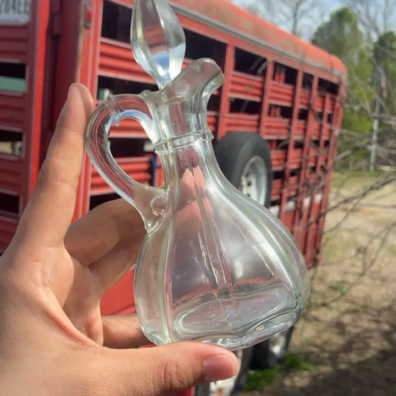 5. Vintage Oil or Perfume Container - Clear Glass with Handle and Spout for Storage and Display