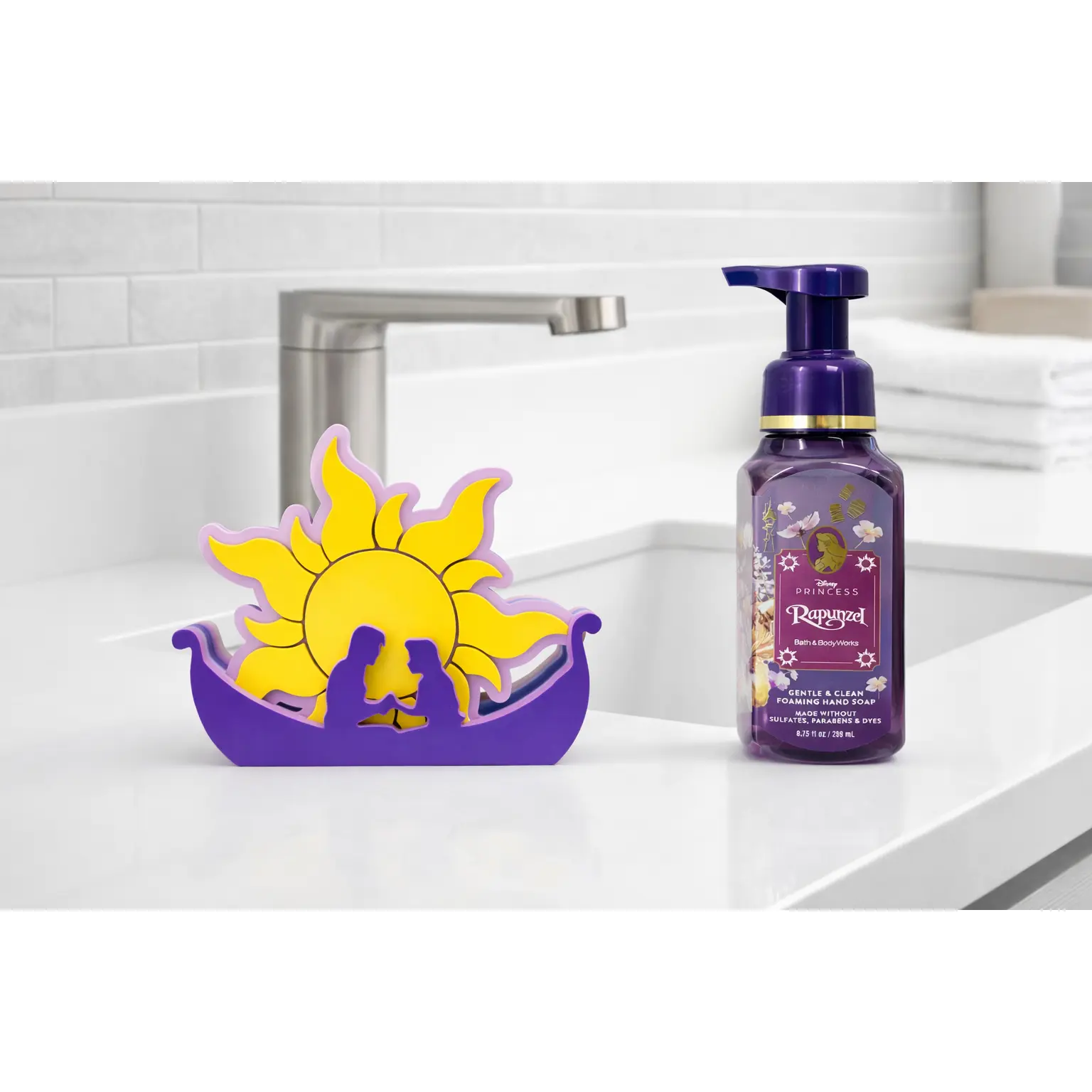 This Rapunzel-inspired soap holder features the iconic sun design with a romantic silhouette scene, making it the perfect statement piece for any Disney lover’s bathroom. Designed to pair perfectly with your favorite foaming hand soaps, it keeps your sink area clean while adding a whimsical, aesthetic touch.Whether you’re upgrading your bathroom decor or creating a themed space, this piece is both functional and eye-catching 💜