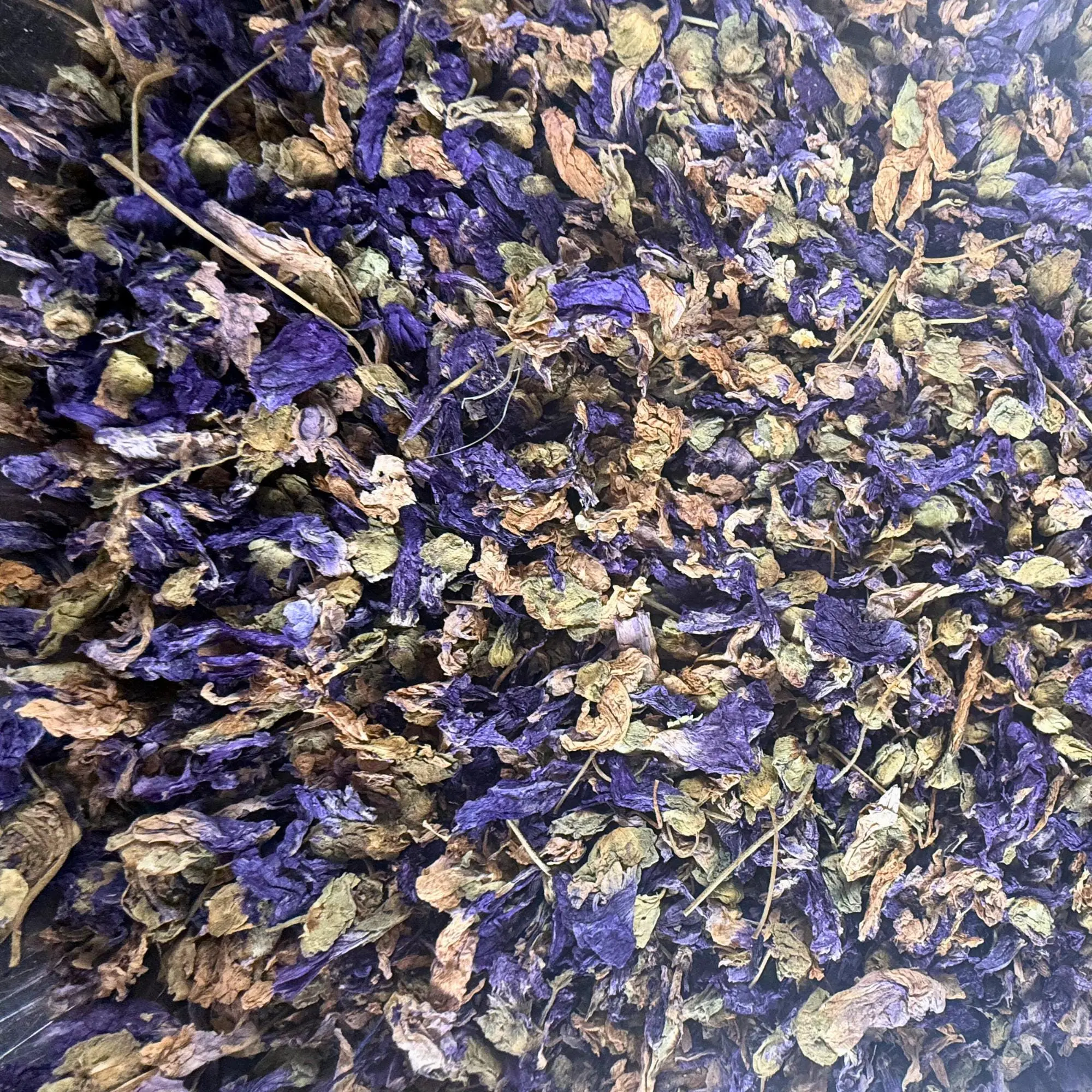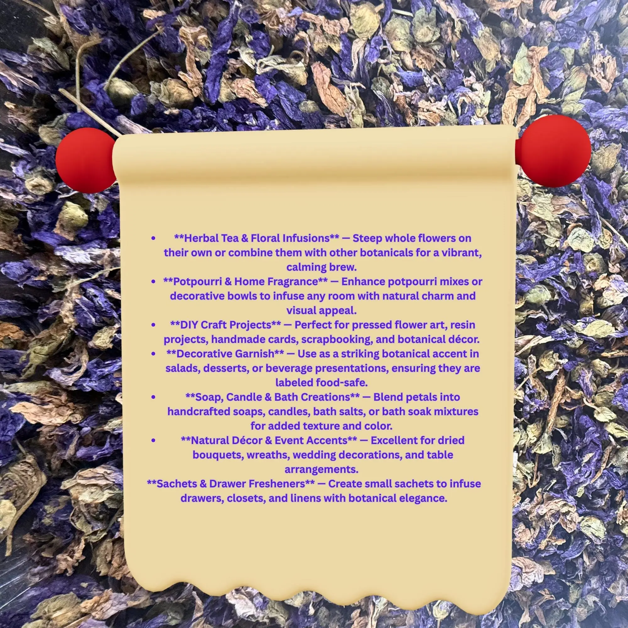 Bring natural beauty, color, and versatility into your home with our wildcrafted Blue Malva flowers (Malva sylvestris). These dried blossoms are carefully harvested from the wild and dried to preserve their vibrant blue-purple hue and delicate shape.