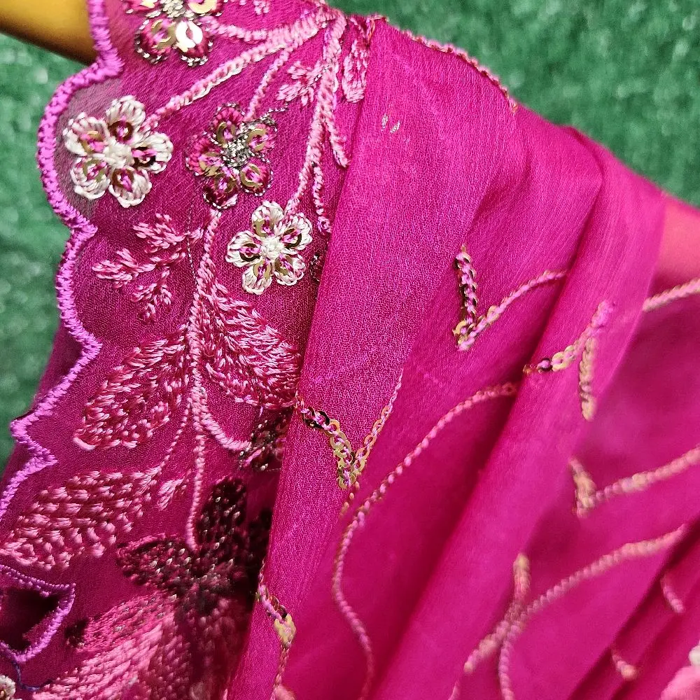 👗 The dress features a flattering silhouette that enhances your figure. The dupatta adds a touch of grace, while the blouse completes the look. This ensemble is versatile, suitable for various party settings.