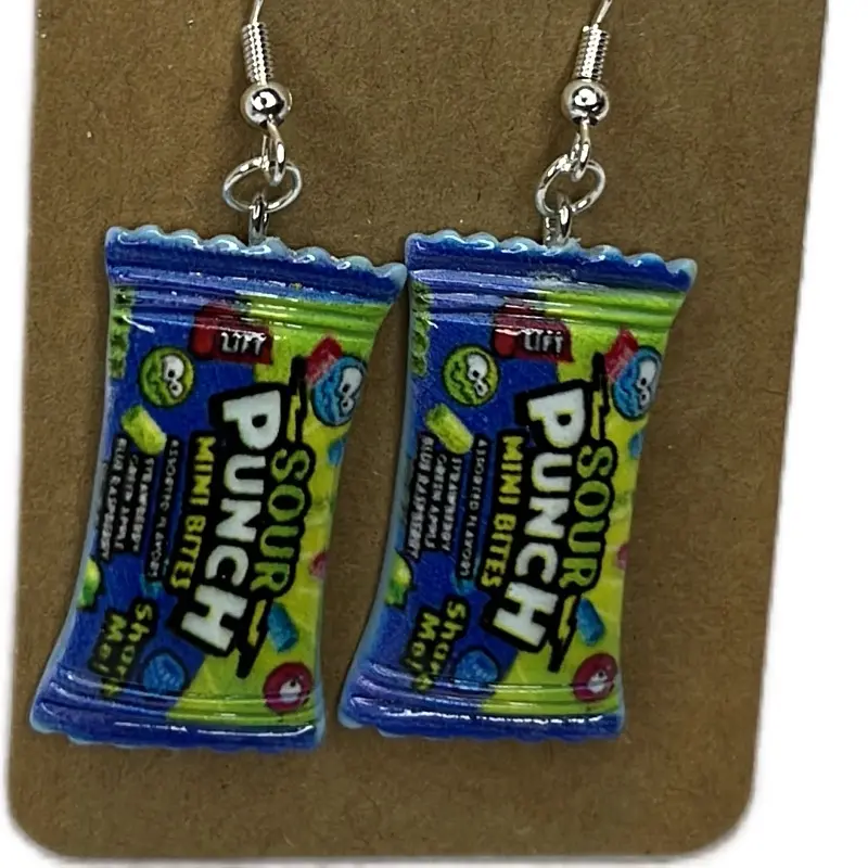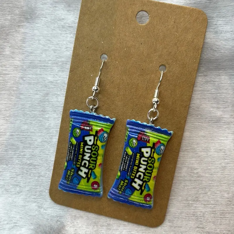 Sour Punch Mini Bites Candy Earrings - Fun Snack Design for Sweet Lovers