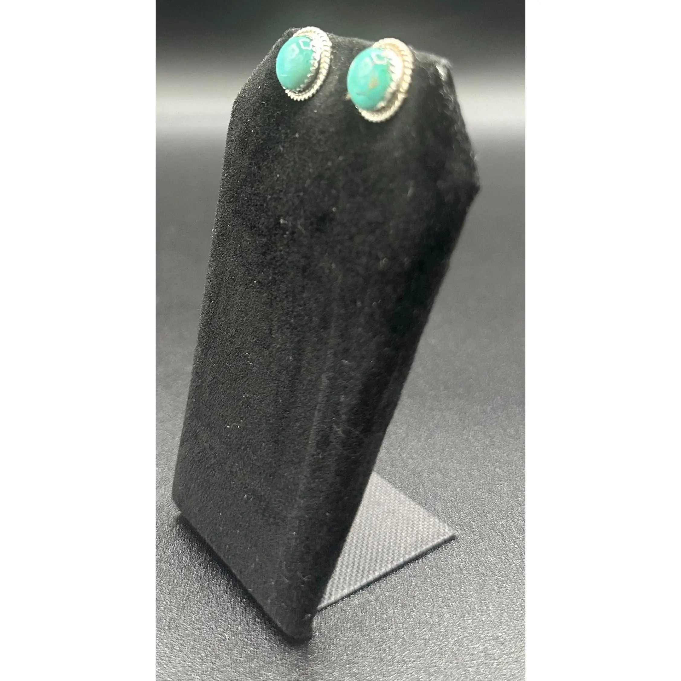 Handcrafted Native American Genuine Turquoise and Sterling Silver Stud Earrings