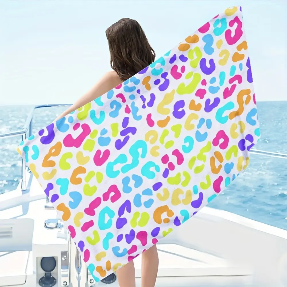Ultra-Soft Microfiber Beach Towel, Quick-Dry, Lightweight, Absorbent, Leopard Print, Ideal for Swimming, Sports, Travel