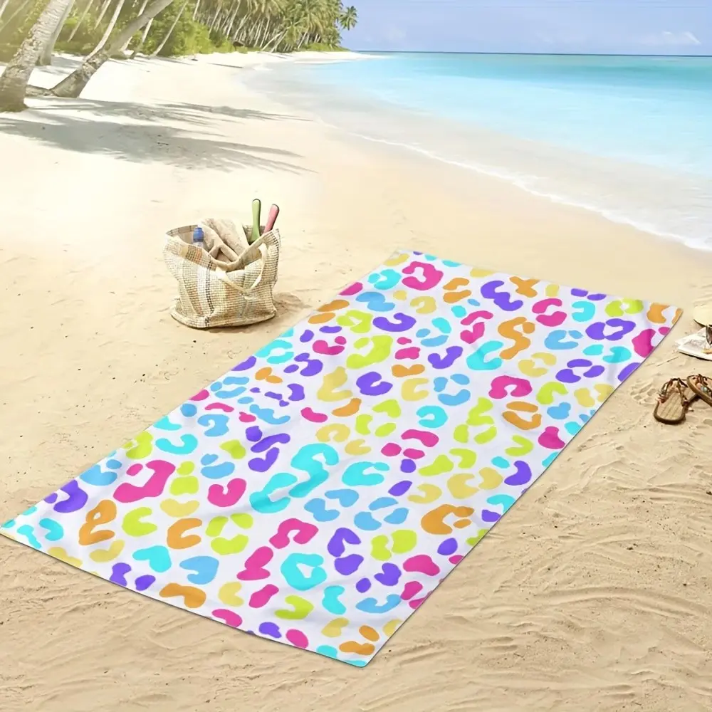 Ultra-Soft Microfiber Beach Towel - Fast-drying, lightweight and absorbent with a leopard print pattern for swimming, sports and travel