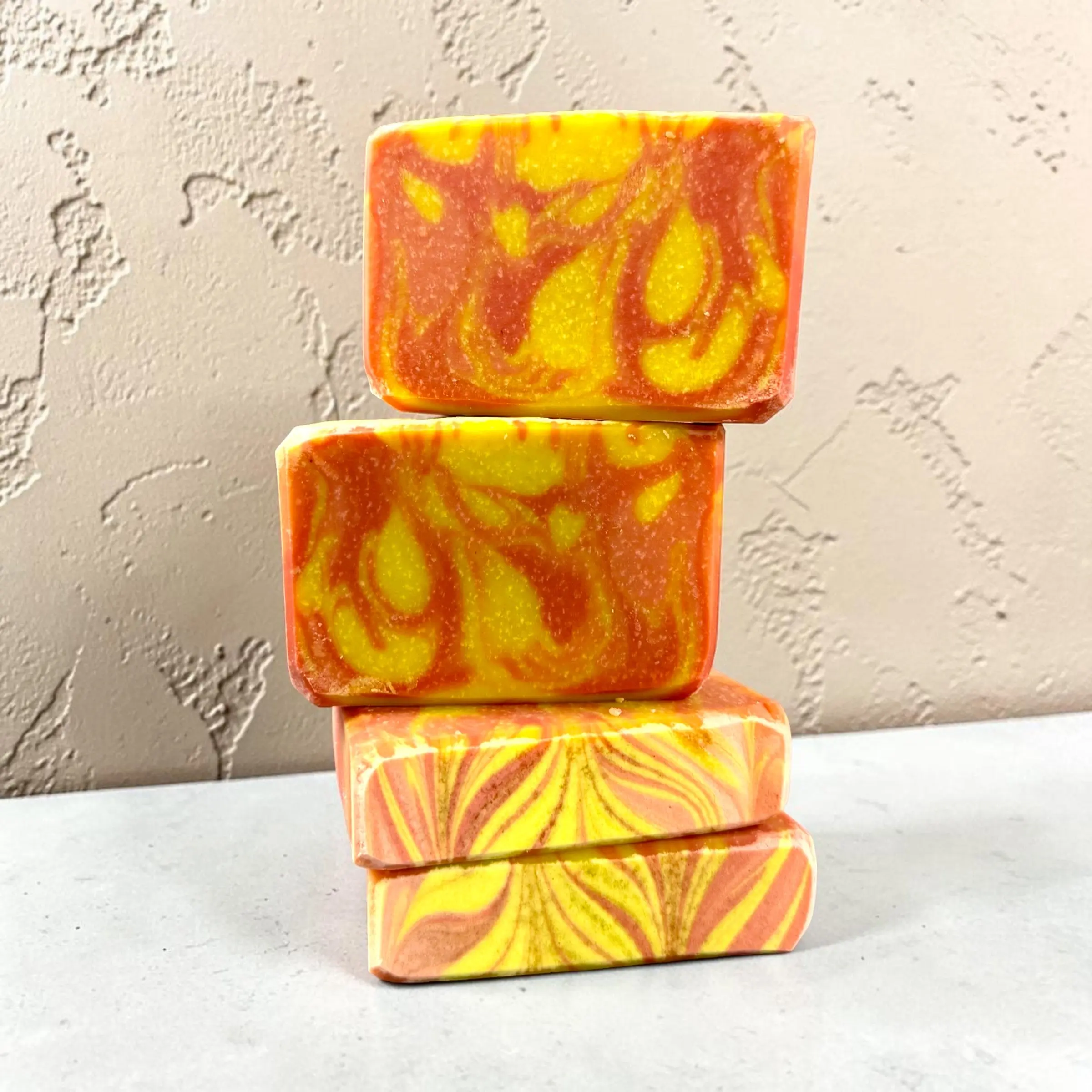 This one came in loud… and stayed that way. Squeeze the Day blends fresh, zesty lemon with soft rose for a scent that’s bright, slightly sweet, and just sharp enough to keep things interesting. It’s giving sunshine with a little attitude, like it smells pretty but don’t play with it. Swirled in bold reds and yellows, this bar looks like it belongs front and center… and honestly, it does. Made with goat milk, tallow, manteca, and a blend of skin-loving oils, it gives you a creamy, bubbly lather that cleans you up without leaving your skin dry or questioning your life choices. Kaolin clay adds a gentle, smooth clean, while the whole bar brings that fresh, feel-good energy every time you use it. It’s bright. It’s bold. And yeah… it knows it smells good.