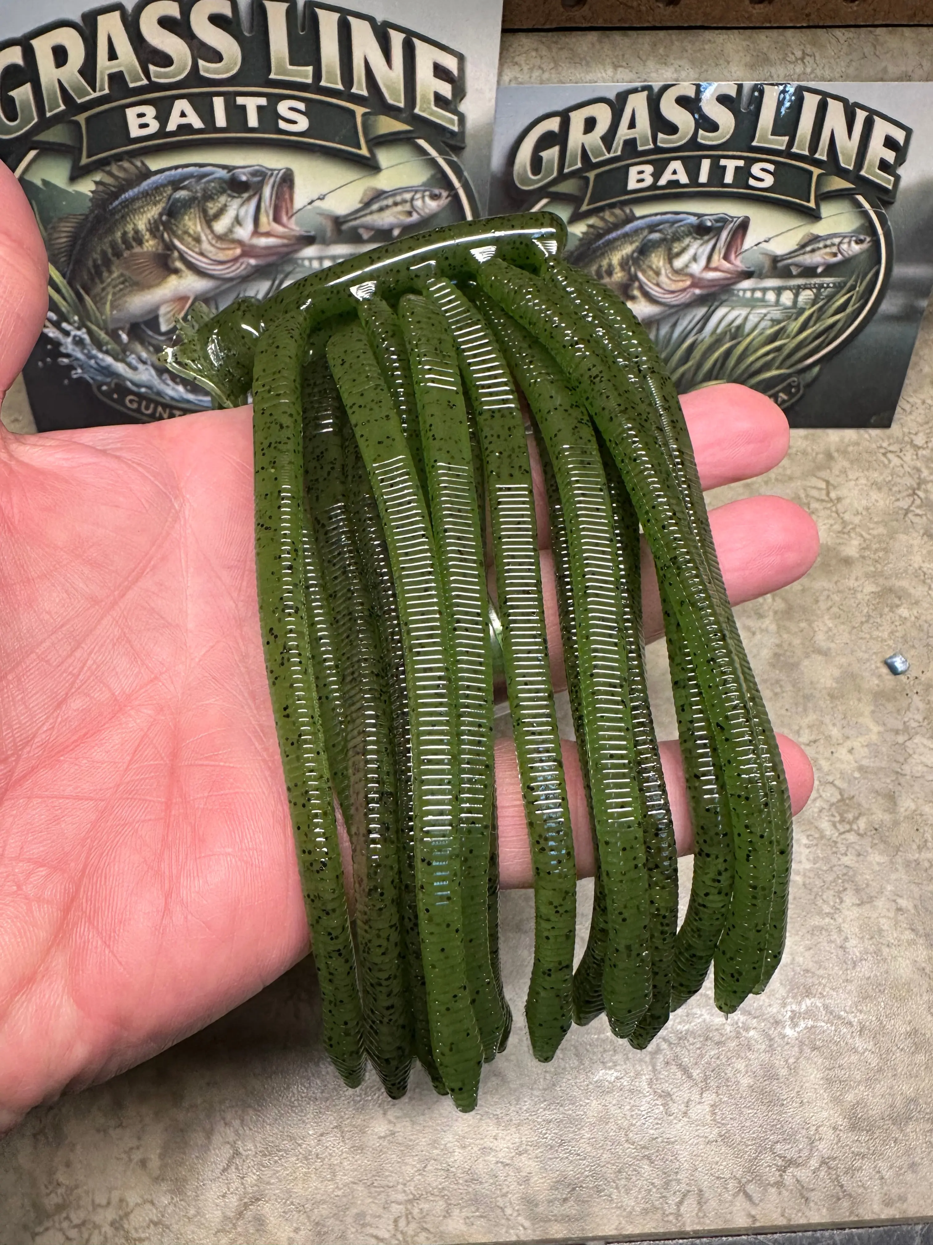 Our 6” Finesse Worm is designed for subtle action and natural presentation—perfect for pressured bass and clear-water conditions. Hand-poured in small batches by Grass Line Baits, this worm delivers consistent fall rate, smooth body taper, and just enough tail movement to trigger strikes without overworking the bait.
