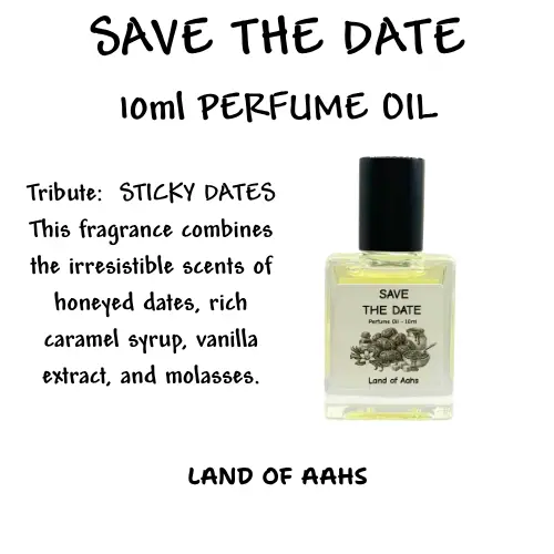 SAVE THE DATE 10ml Perfume Oil - Roll On Rollerball Roller Honeyed Dates Rich Caramel Syrup Molasses Vanilla Rich Cozy Foodie Gourmand Scent