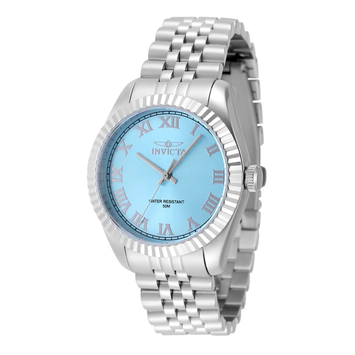 Modern and refined, the Invicta Specialty Windsor delivers confident styling in a versatile 36mm stainless steel profile. Featuring a polished steel case and matching bracelet, this timepiece offers a clean and contemporary look suited for everyday wear or dress occasions.