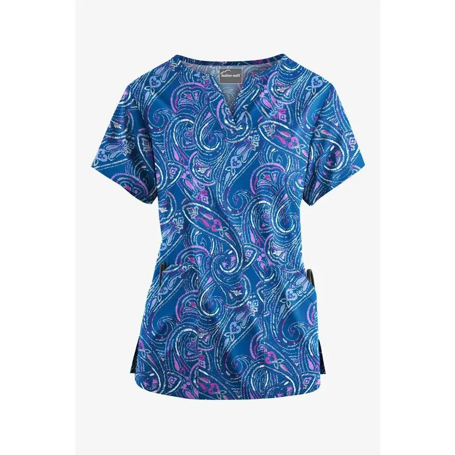 Butter-Soft Paisley Royal Scrub Top | Lightweight 4-Pocket V-Notch Scrub for Nurses & Healthcare Workers