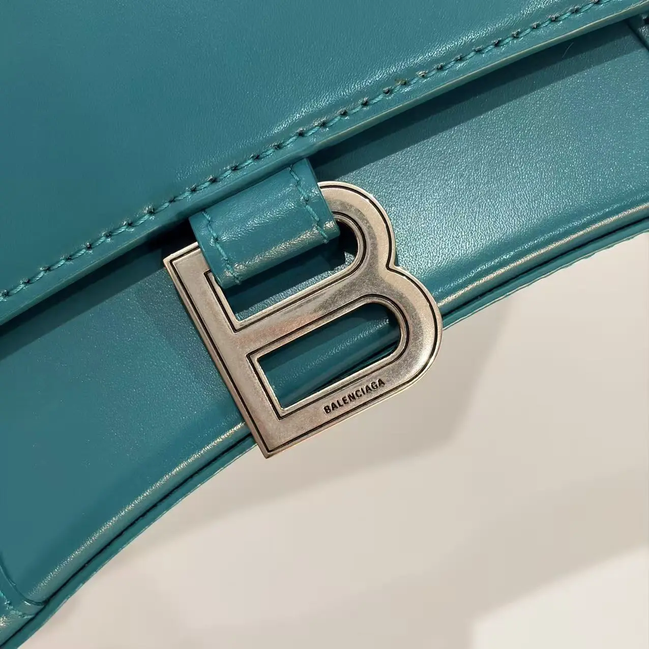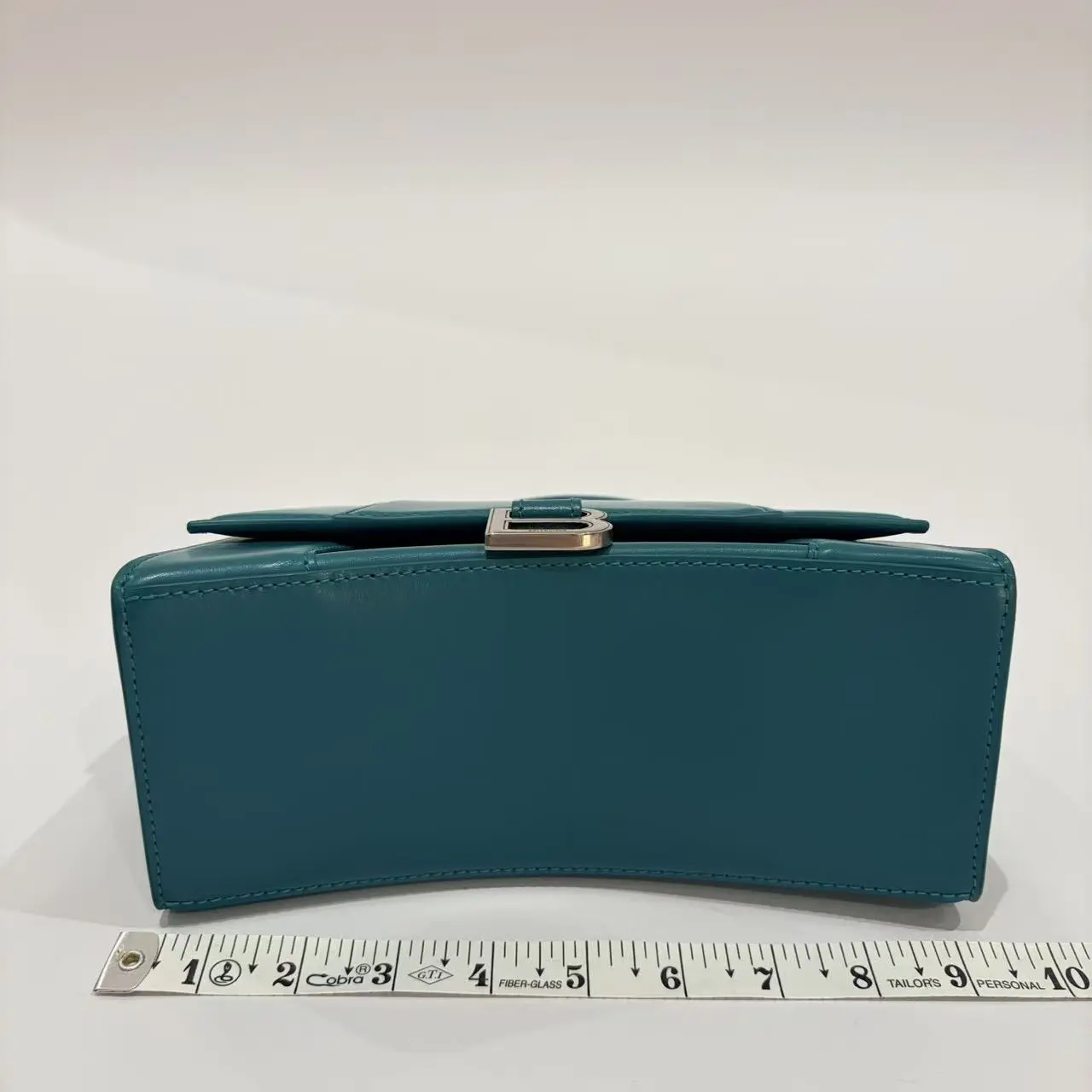 Pre-owned Balenciaga Smooth Calfskin Leather Top Handle Bag / Crossbody Hourglass Small Top Handle Bag Green Leather Silver Hardware