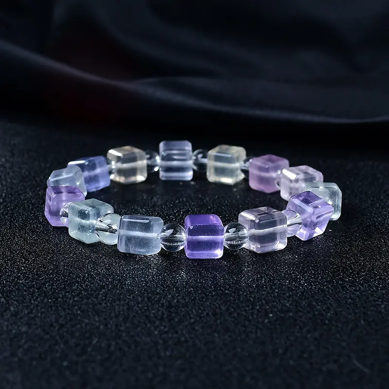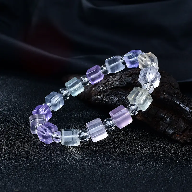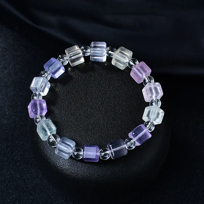 ·Design: Candy-colored gradient fluorite, cute sugar cube shape, handmade with premium elastic string, durable and comfortable to wear. A perfect gift for yourself or your loved ones!