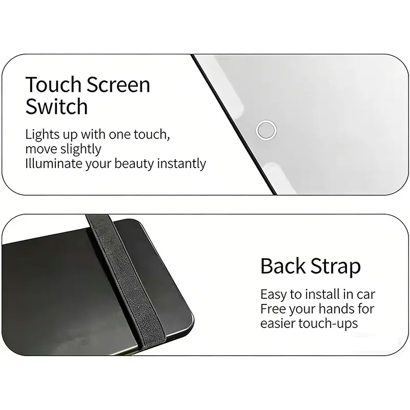 ·This car mirror built-in large lithium battery, 1 Time Charging,7days+ working time.Features LED lights with 3 color modes and stepless dimming, dim for night use or brighten during the day. Short press to switch light colors, long press to adjust brightness, and the built-in memory function automatically saves your last settings for easy repeated use.