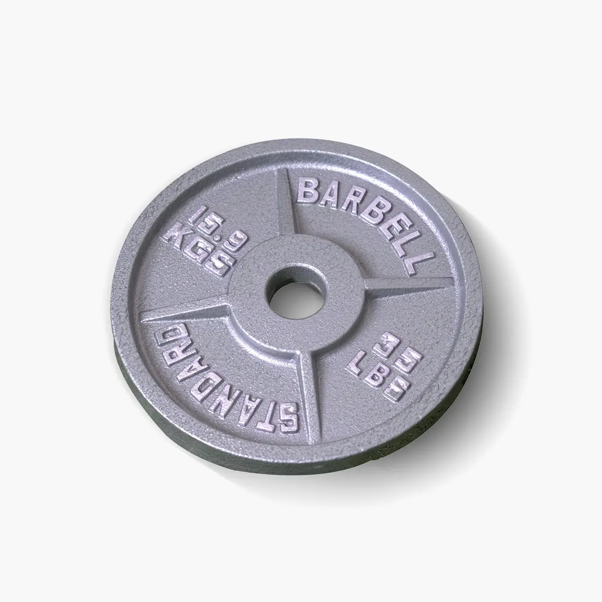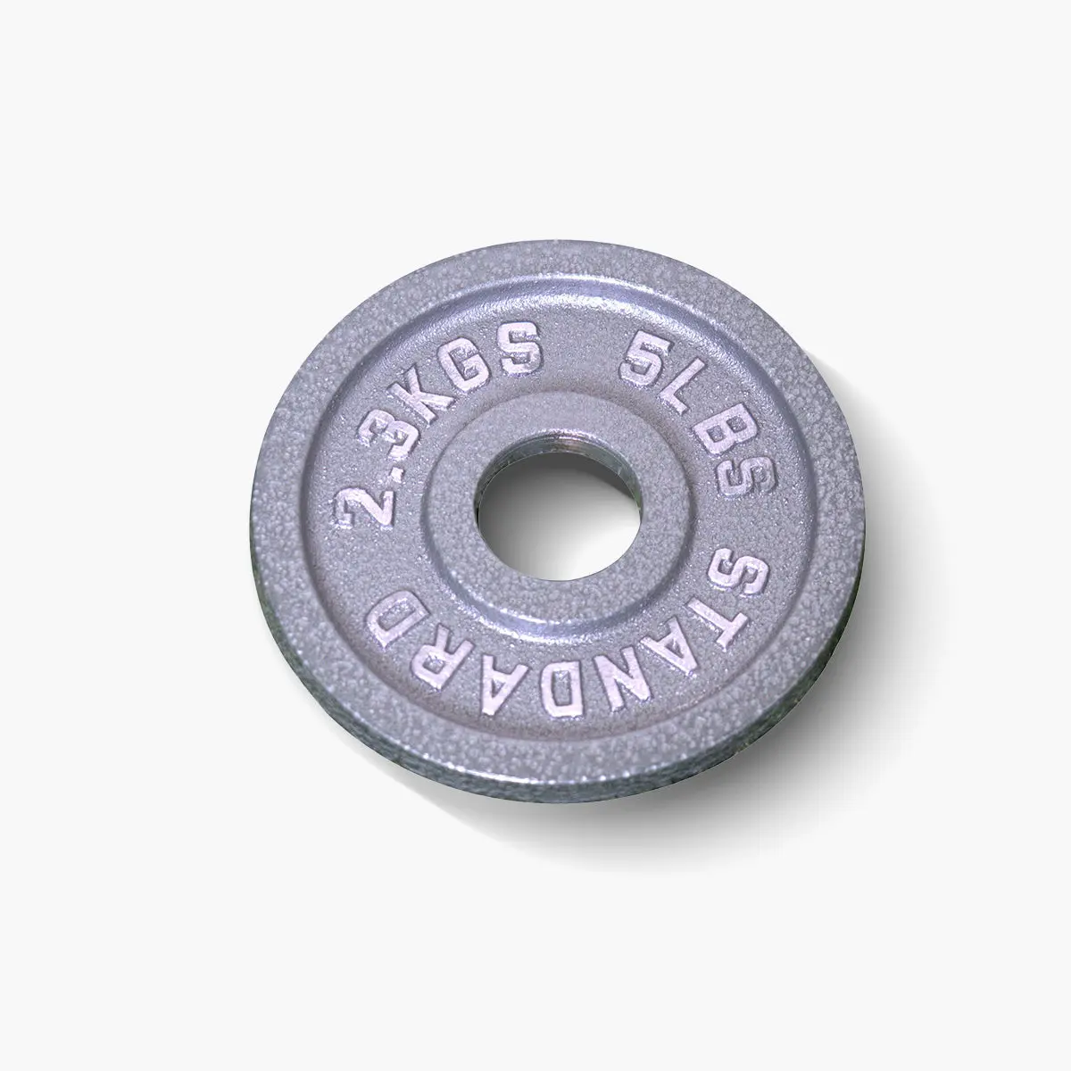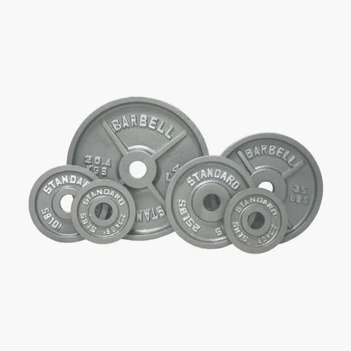 You’ll get pairs of 2.5 lb, 5 lb, 10 lb, 25 lb, 35 lb, and 45 lb plates.