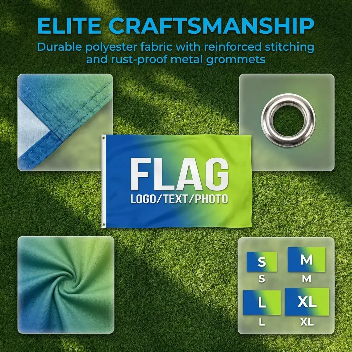 STOP SETTLING FOR FADED FLAGS! Upgrade to our Premium Custom Flag—engineered to withstand the elements while showcasing stunning, high-definition designs.