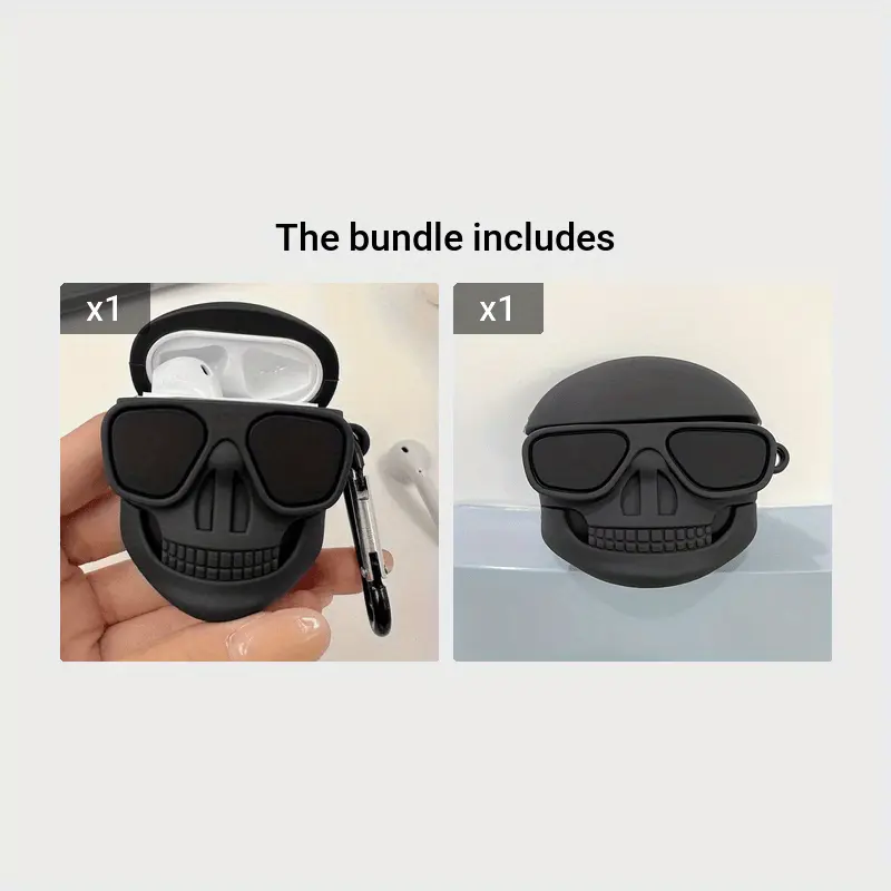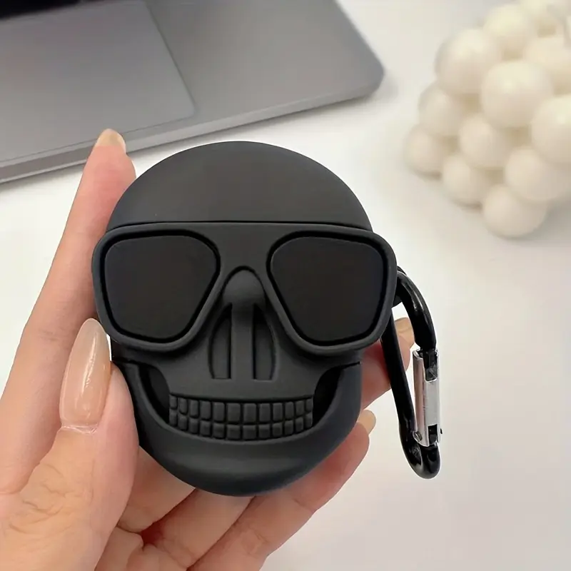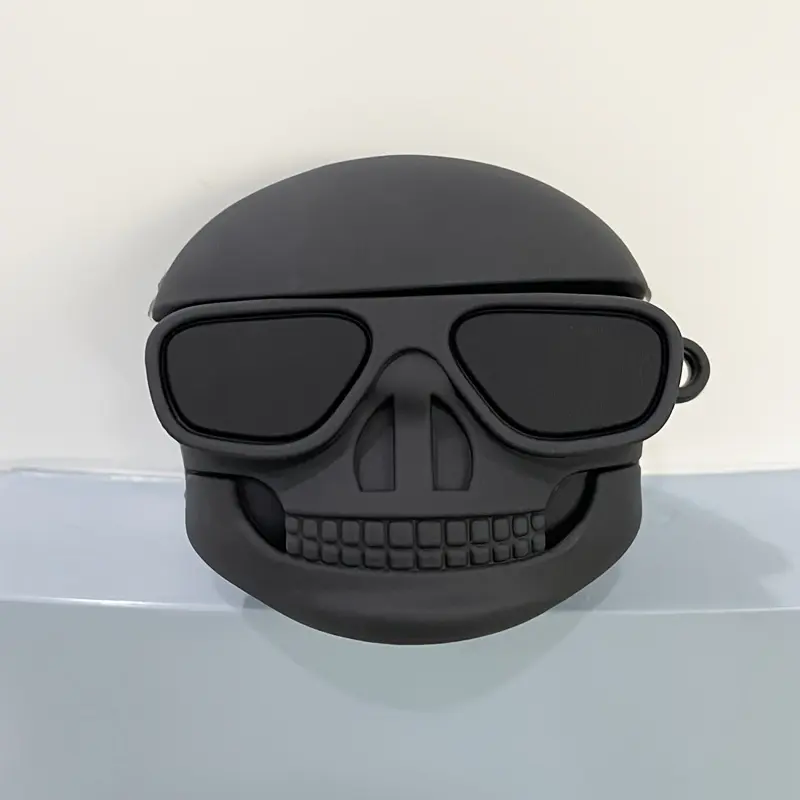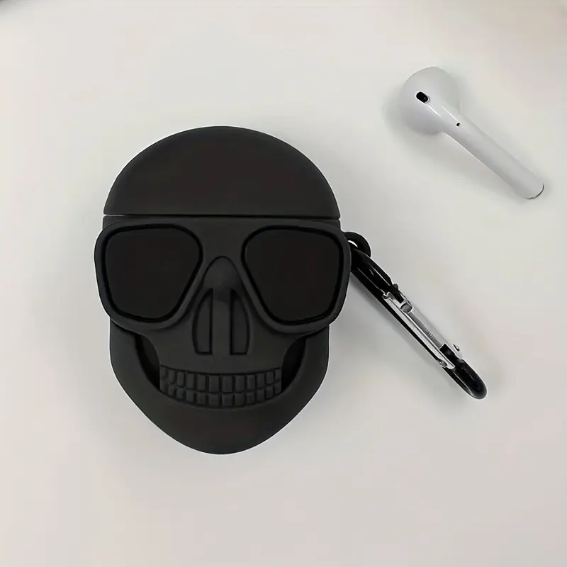 Airpods protective case, featuring a hip-hop skull design, made of durable silicone material, a perfect gift for friends and family