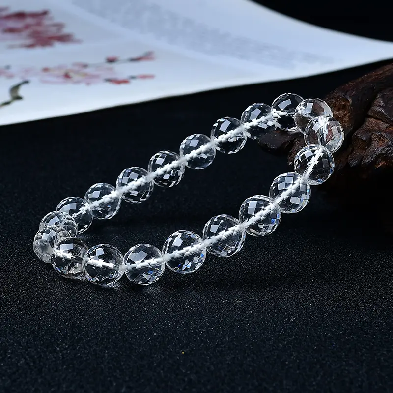 This stunning bracelet is handcrafted with premium high-clarity natural Clear Quartz, featuring a precision faceted (diamond cut) design that maximizes light refraction and amplifies the crystal's powerful healing energy.
