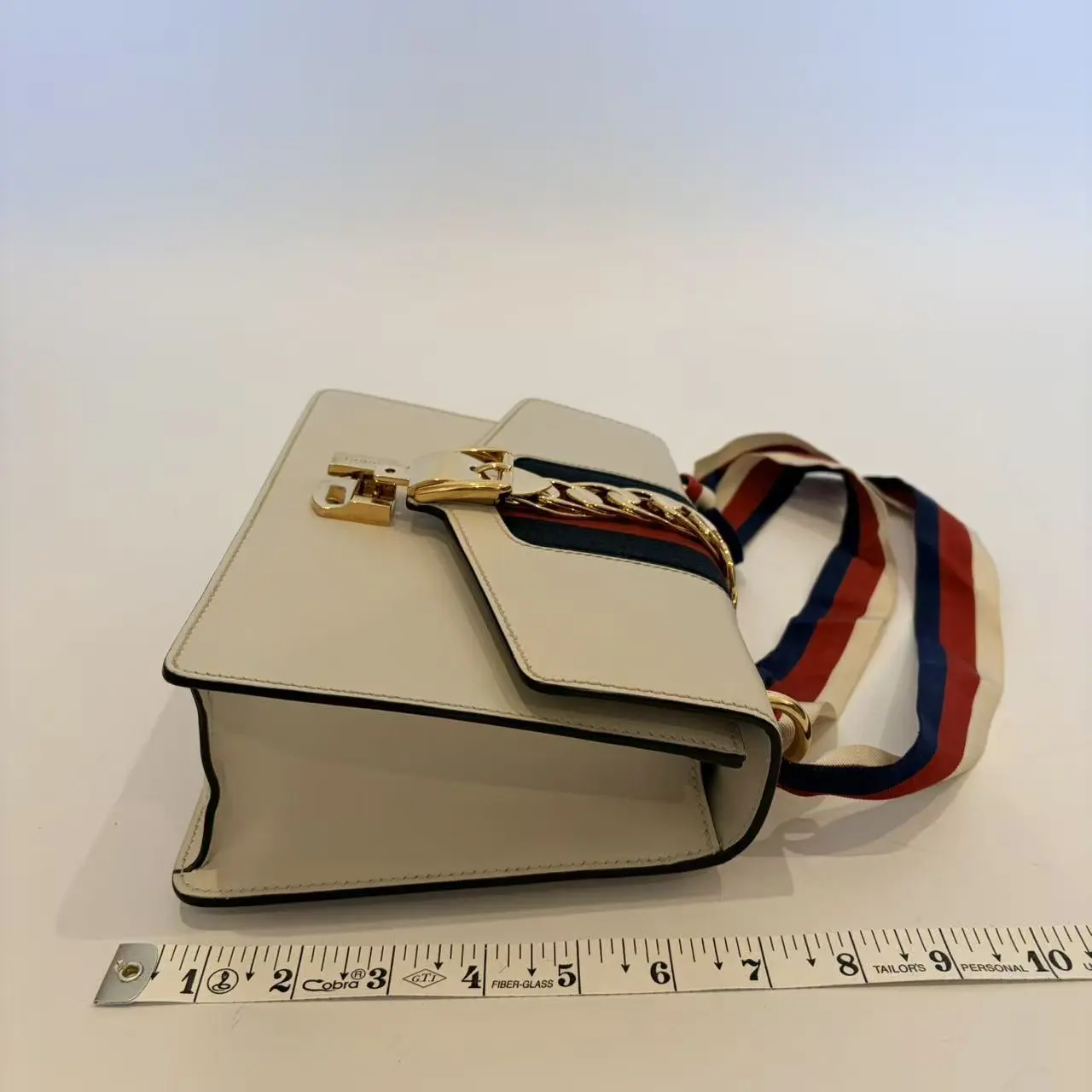 Pre-owned GUCCI Calfskin Leather Crossbody Bags Sylvie Super Mini Chain Shoulder Bag White Calfskin Gold Hardware