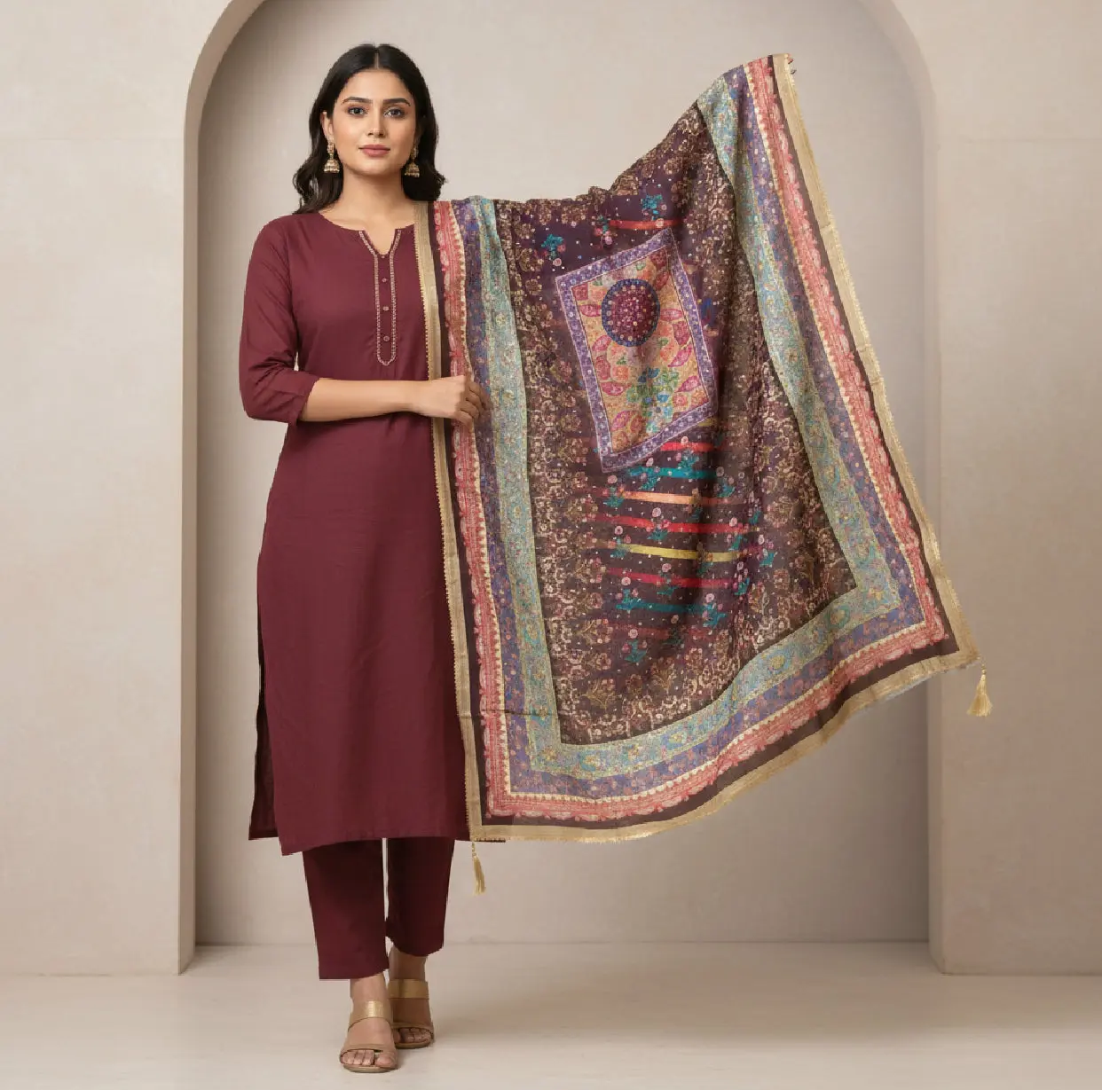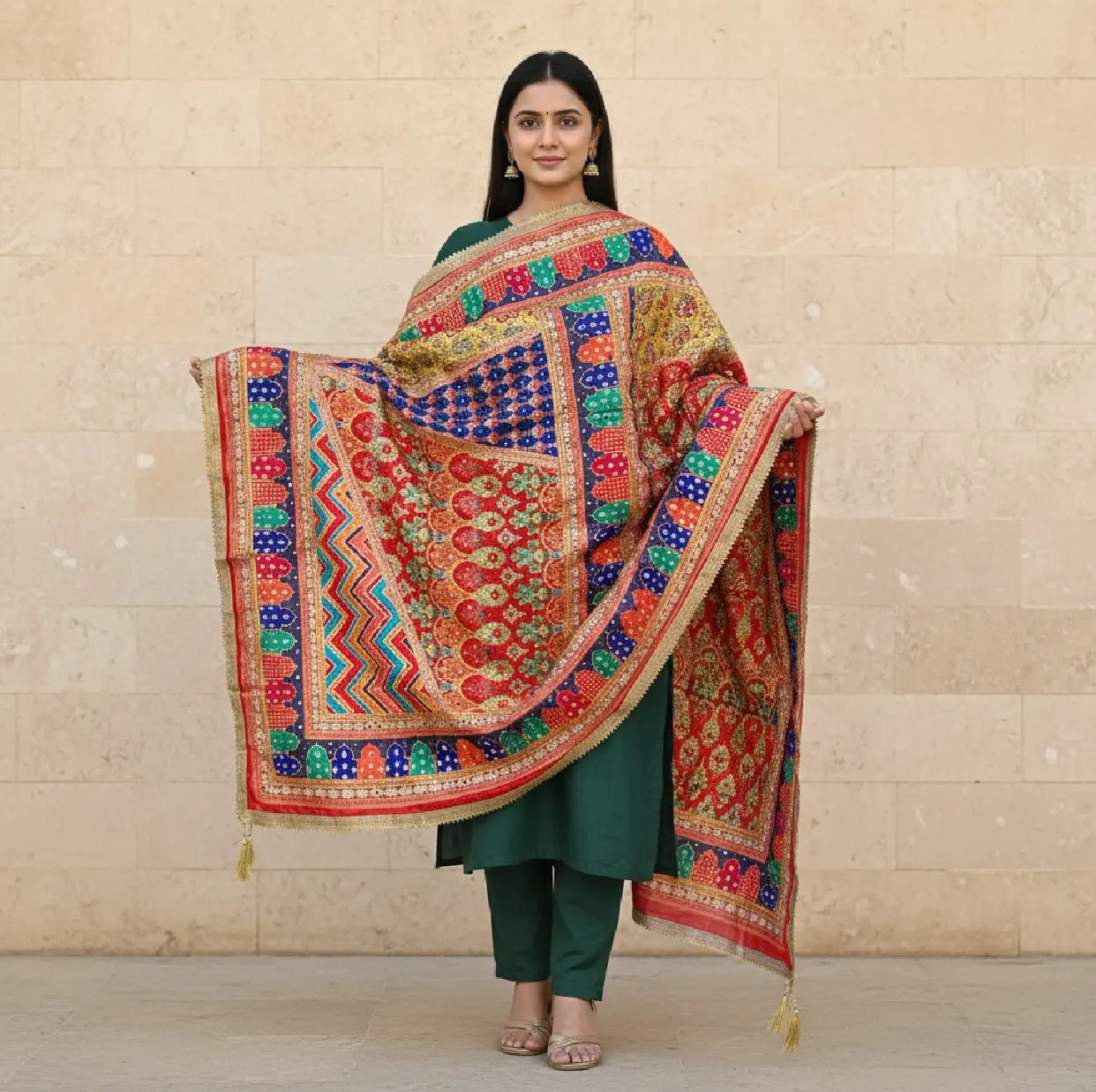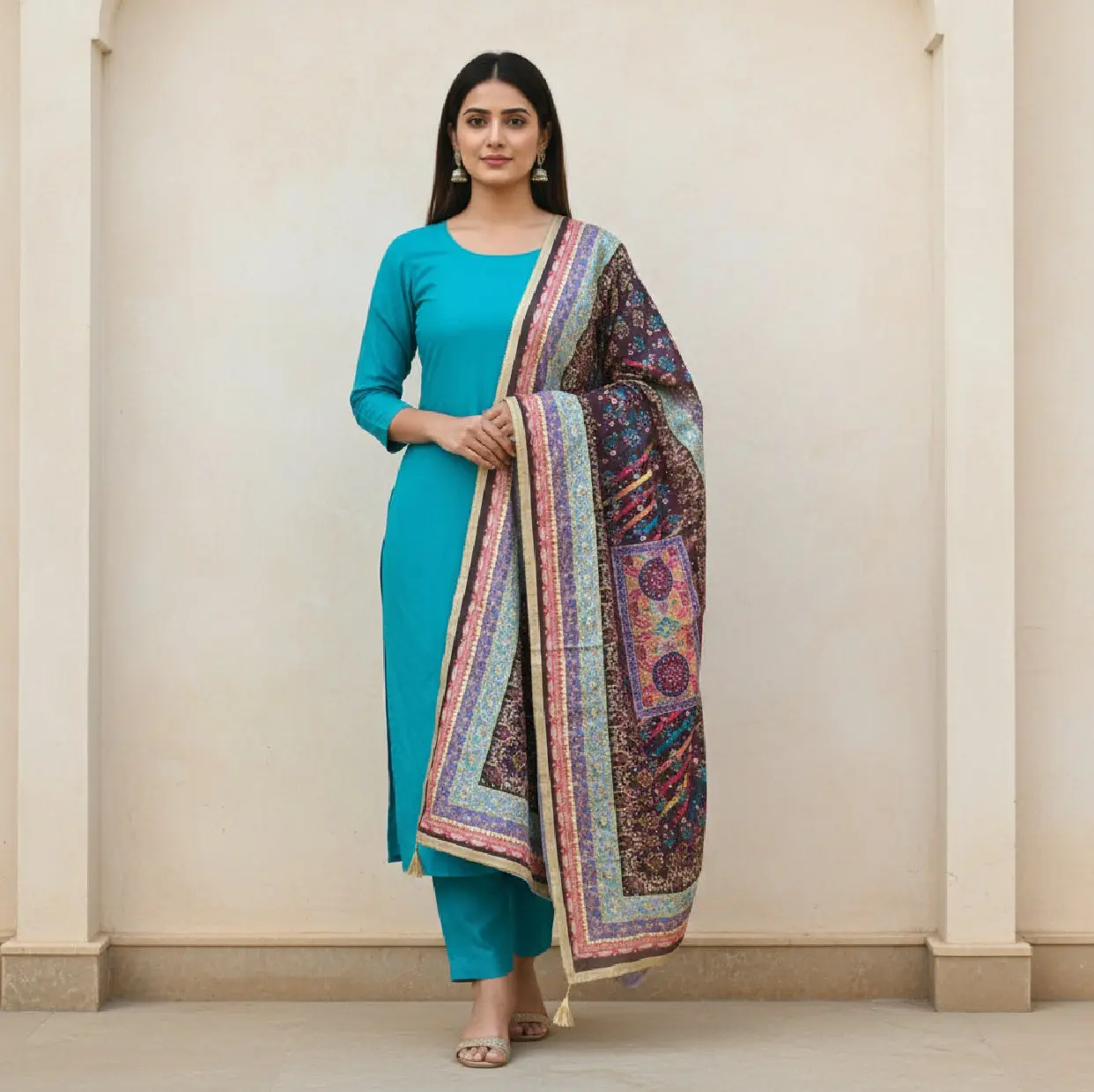 Elevate your ensemble with the Digital Print Mirror Dupatta, designed with intricate digital print techniques. This accessory complements a variety of outfits, adding visual interest and cultural depth. The use of mirrors in the design enhances light reflection, contributing to an elegant look.