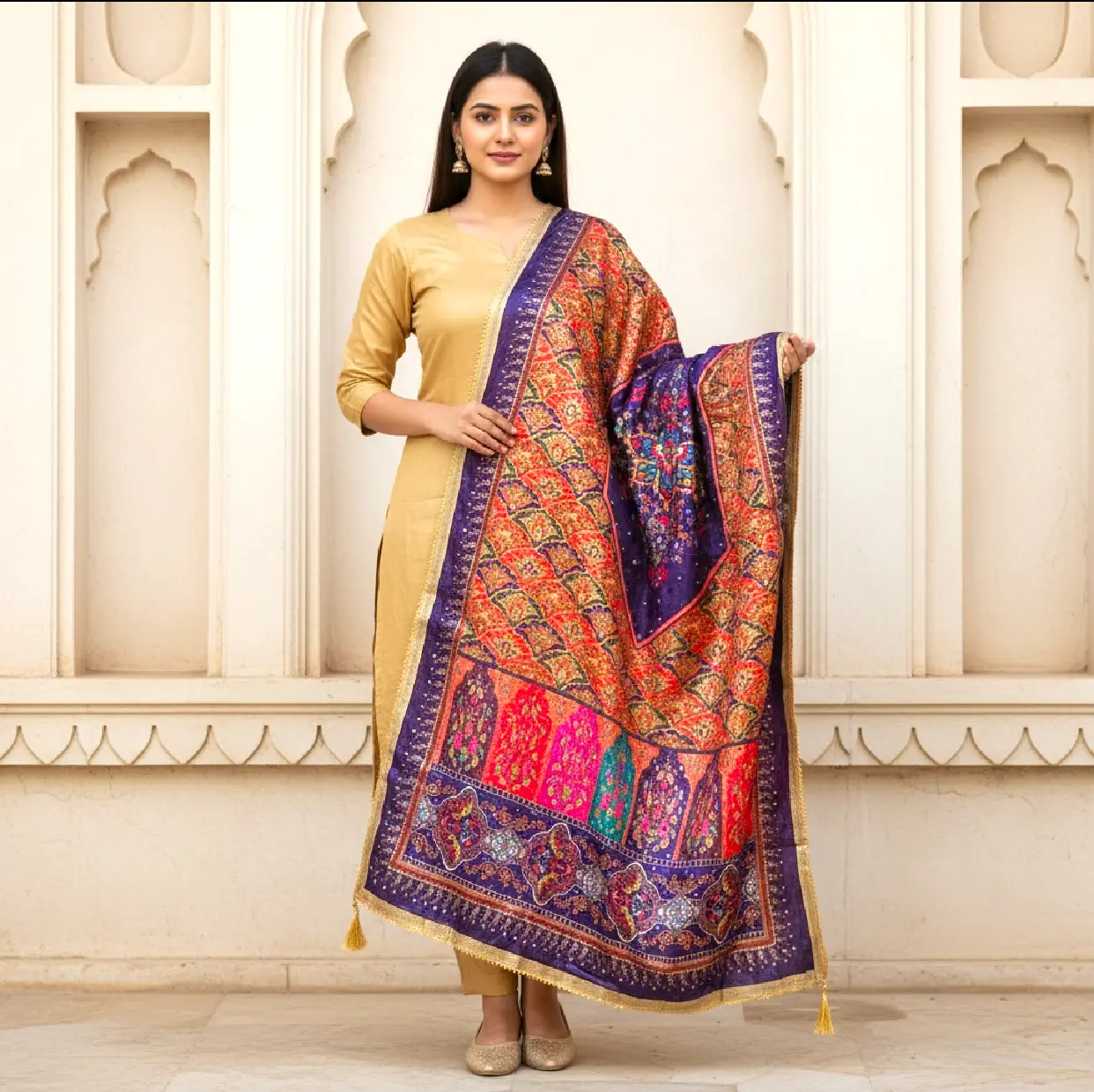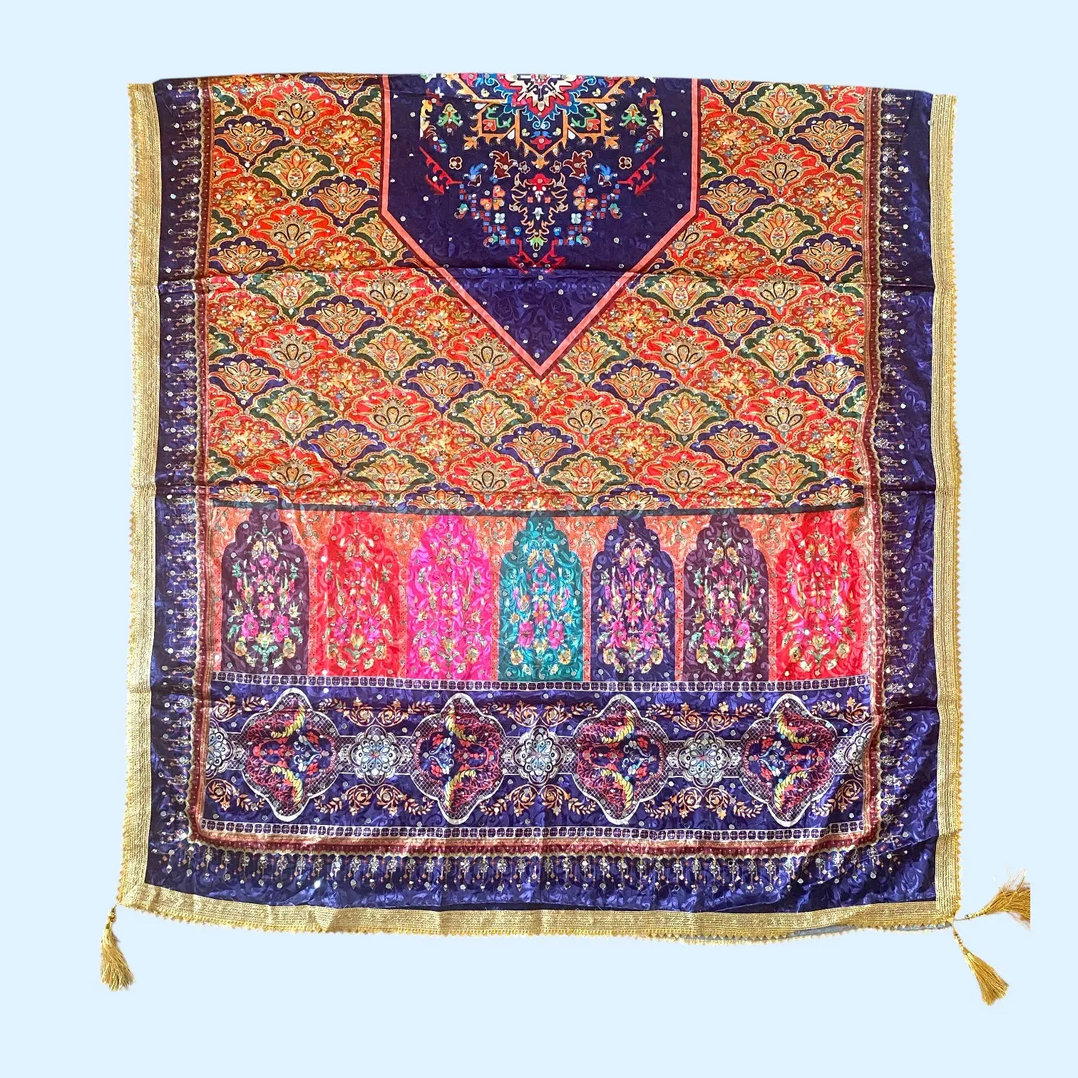Elevate your ensemble with the Digital Print Mirror Dupatta, featuring intricate designs that enhance visual appeal. Crafted with precision, this dupatta offers a perfect blend of style and sophistication, making it an ideal accessory for various occasions.