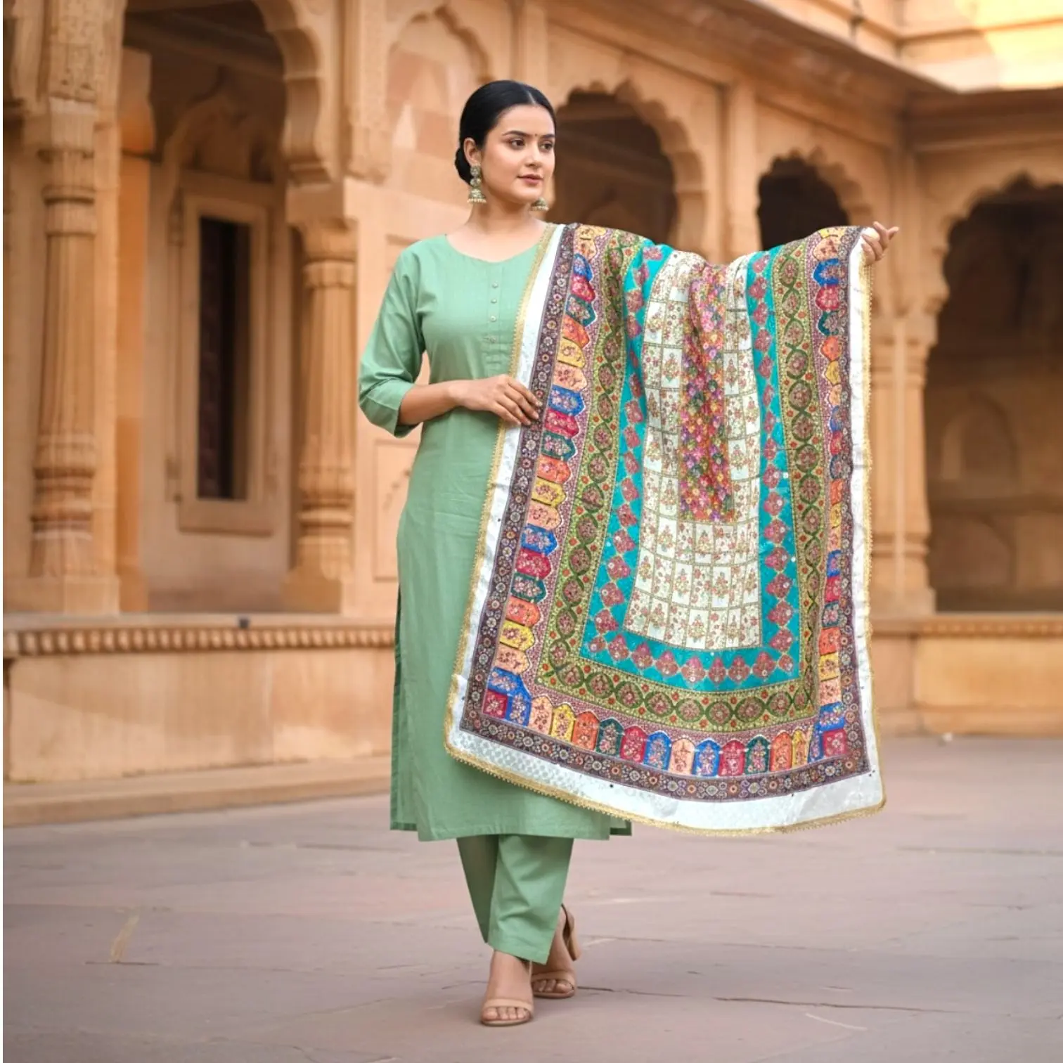 Discover the elegance of the Full Length Mirror Dupatta, crafted to enhance any kurta. Its reflective surface adds a touch of sophistication, ideal for special occasions. The full-length design provides ample coverage and versatility, making it suitable for various styles and ensembles.